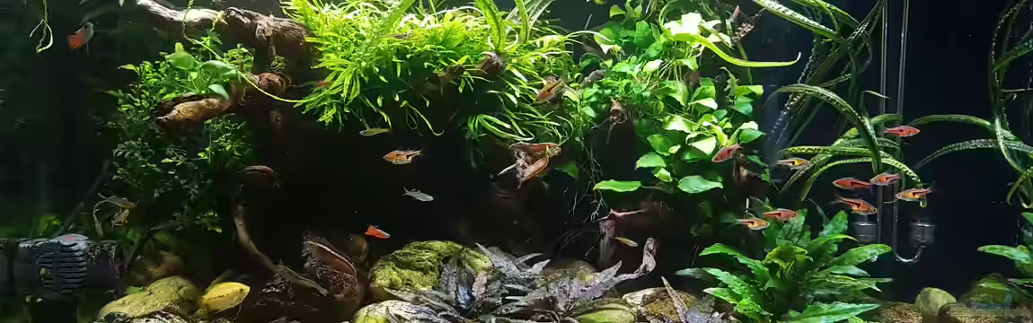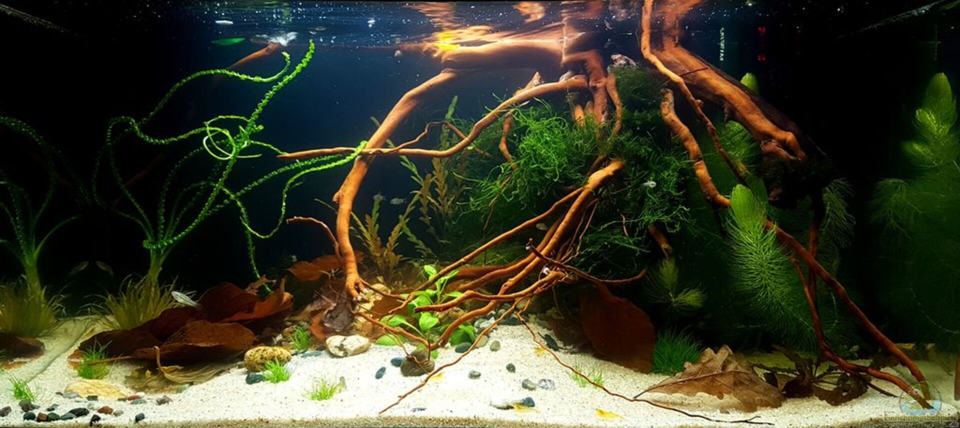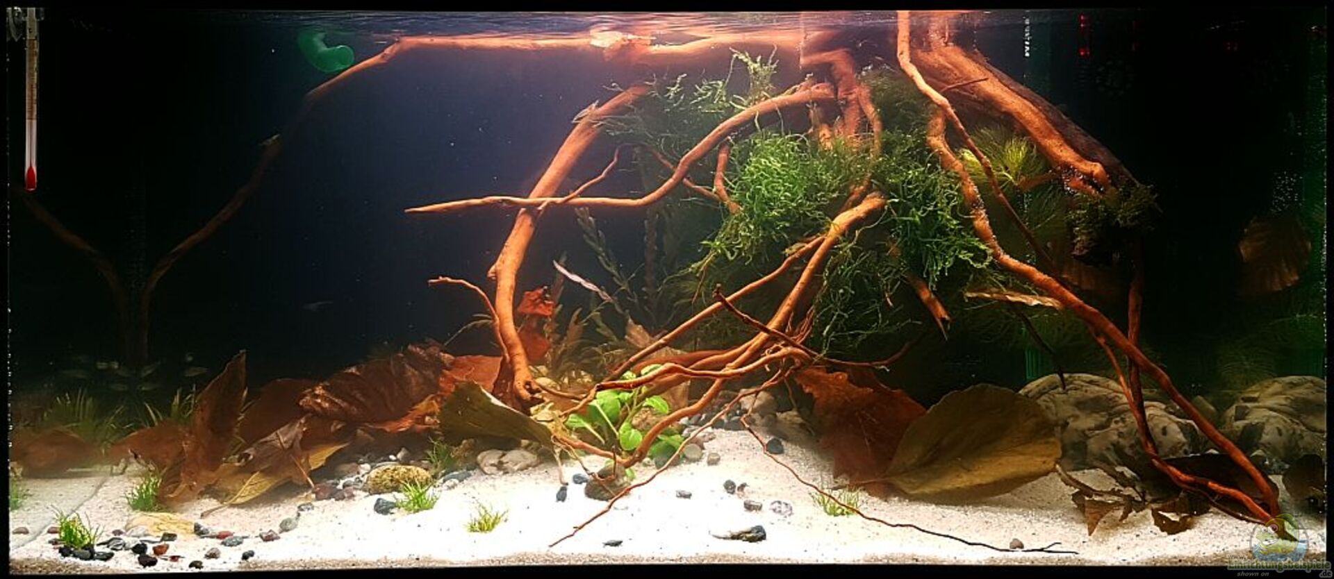 super schönes Becken....mal wieder^^. Ich denke, die grosse Kunst ist es, ein 54 l, also 60 cm Becken gross wirken zu lassen. Das ist Dir voll und ganz gelungen. Viel Schwimmraum vorne und der Urwald im Hintergrund. Ich wollte mal fragen, wie du denn die Wurzeln im Eck befestigt hast.
