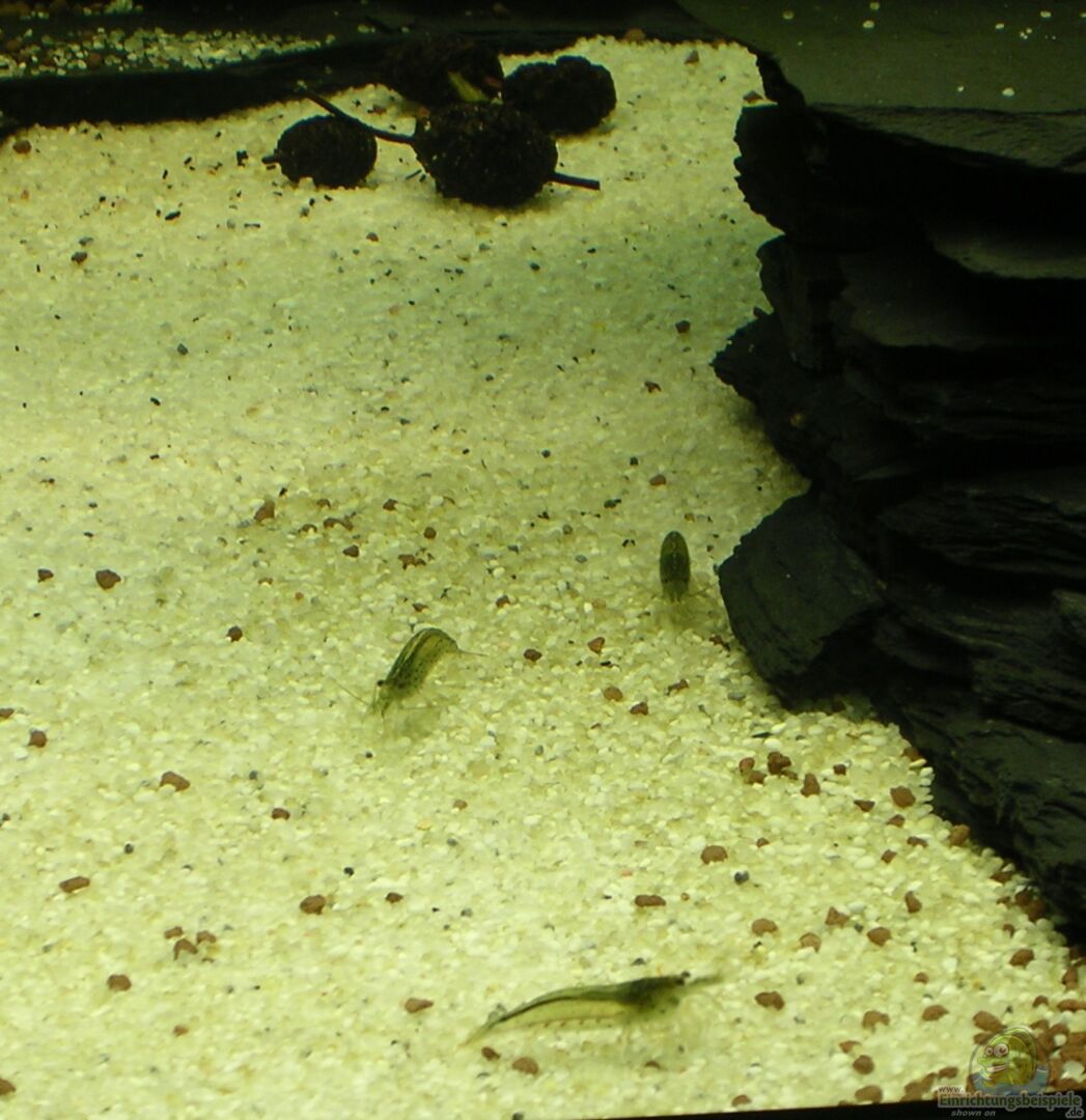 Die Otos ("die Horde") scheint es zu lieben, sich auf und an der Moorkienwurzel auf der linken Seite zum Dösen nieder zu lassen. Bilder zum Thema "Rückenschwimmenderohrgitterharnischwels" werd ich auch noch hinbekommen :-).