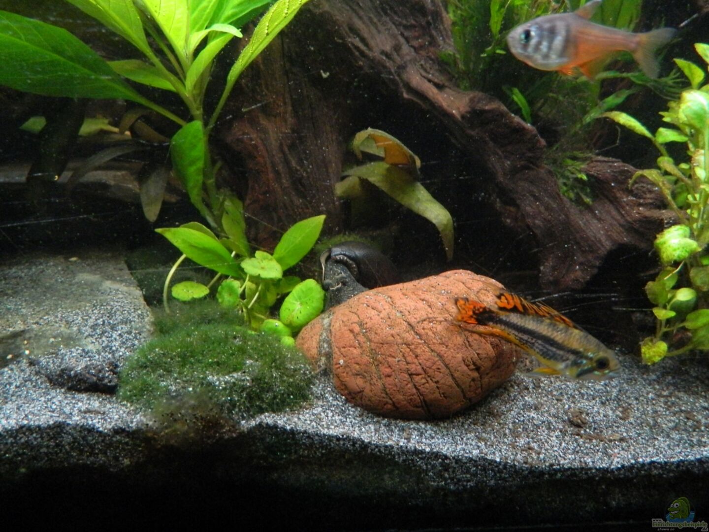 Auf einem Bild ist noch eine Hemianthus micranthemoides zu sehen, die ist aber von den Welsen rabiat bearbeitet worden und ist mehr oder weniger eingegangen.