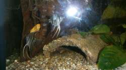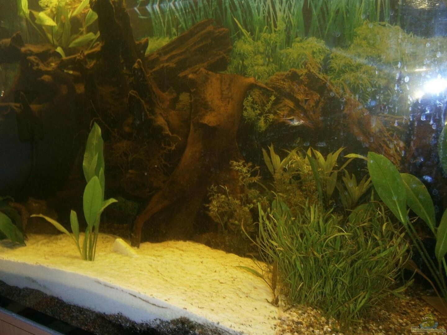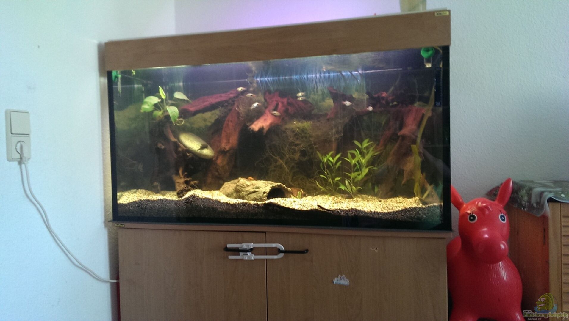 Das Becken hab ich schon eine Weile, musste es aber im kinderzimmer unterbringen, wollte es verkaufen...Frau und Kinder wollten es aber behalten, so habe ich es neu eingerichtet. mu??te Qurzeln noch einmal umstellen, da sich die Linendornwelse nicht mehr haben blicken lassen bei der Fütterung...jetzt ist es besser....