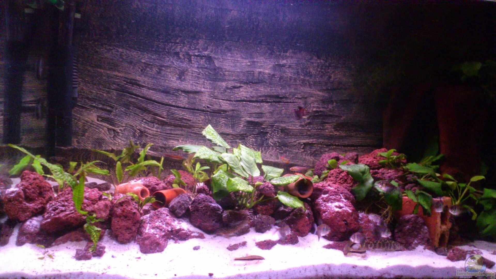 Eventuell werde ich noch einen alten kleinen Innenfilter als Strömungspumpe einbauen. Da die beiden Au??enfilter gedrosselt sind um die Filterleistung zu erhöhen erscheint mir die Strömung sehr gering.