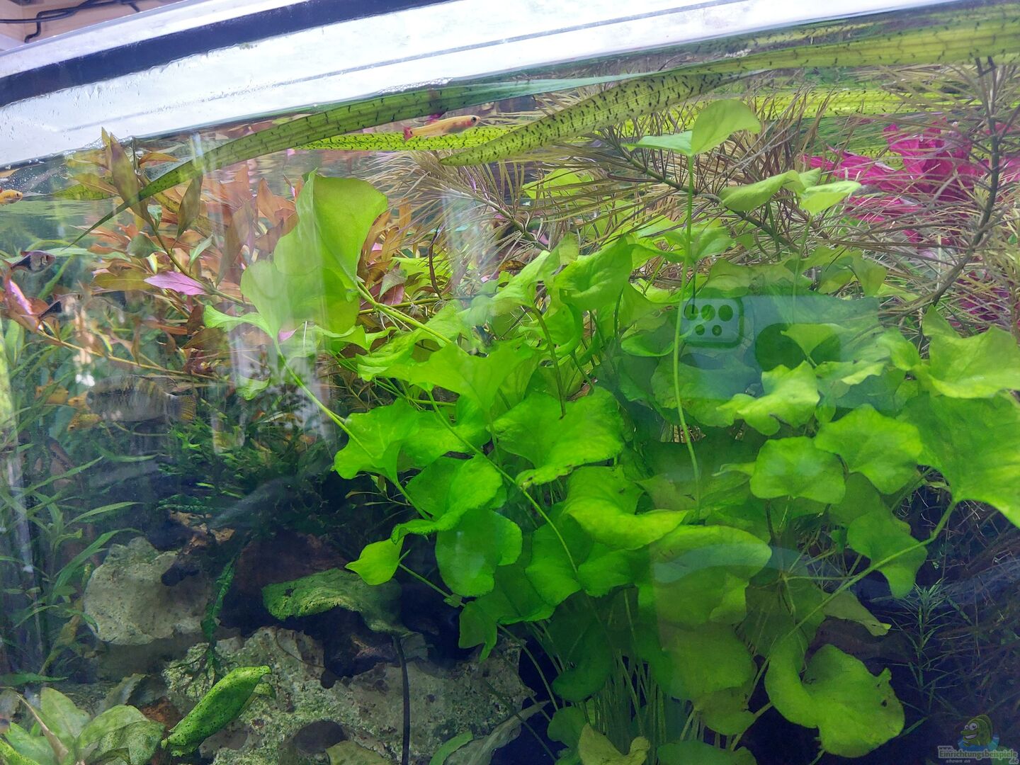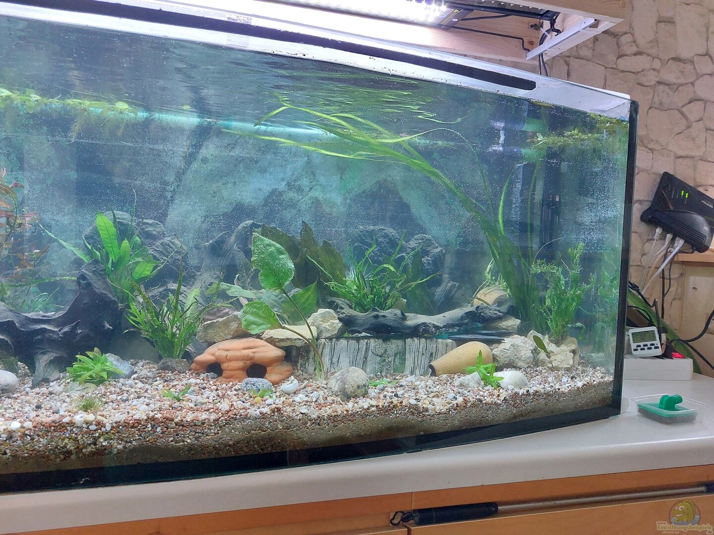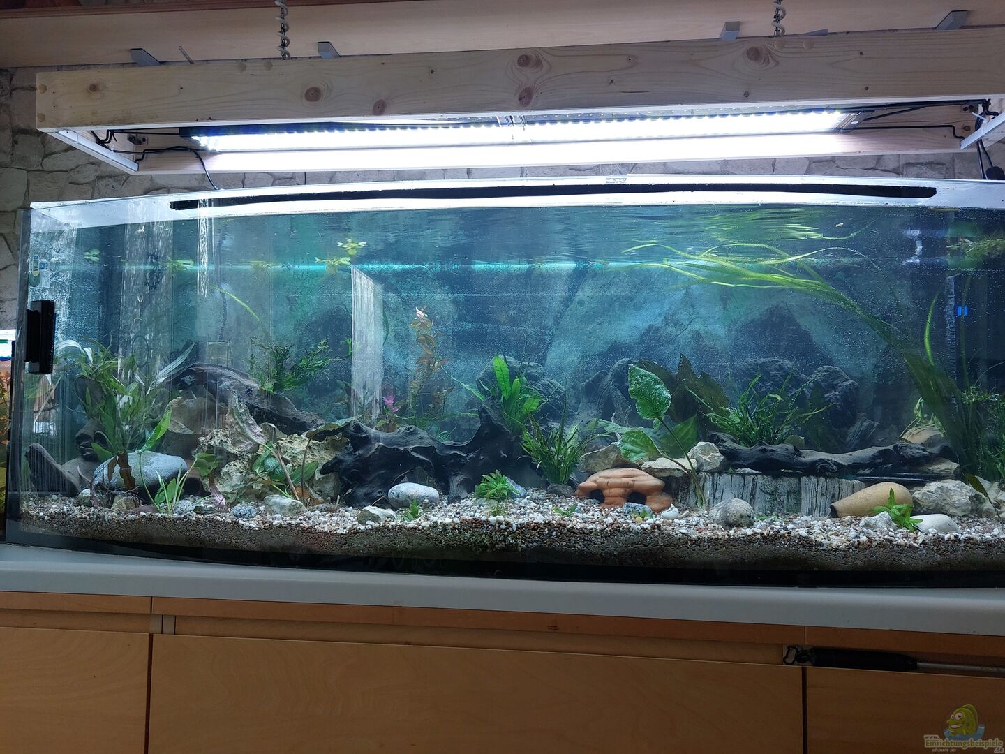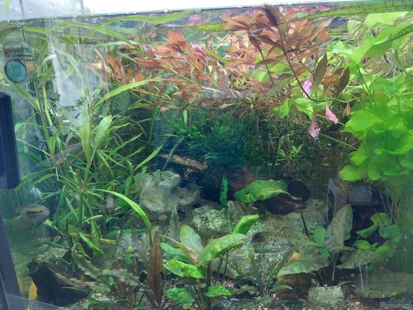 Optisch gefällt mir dein Aquarium ganz gut. Ich würde mir allerdings mehr Infos wünschen. Vor allem beim Besatz.