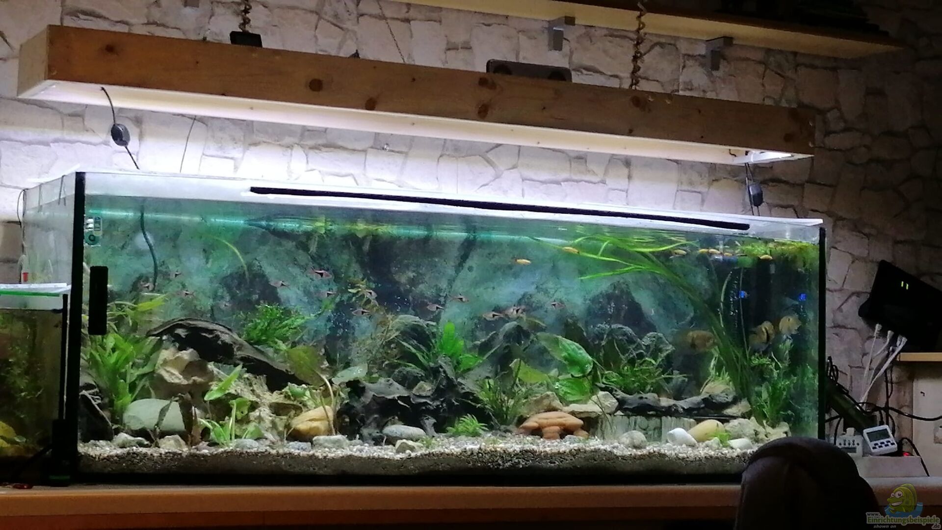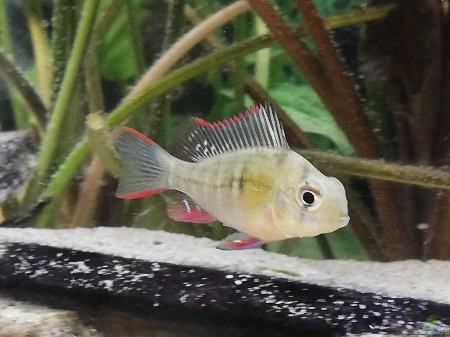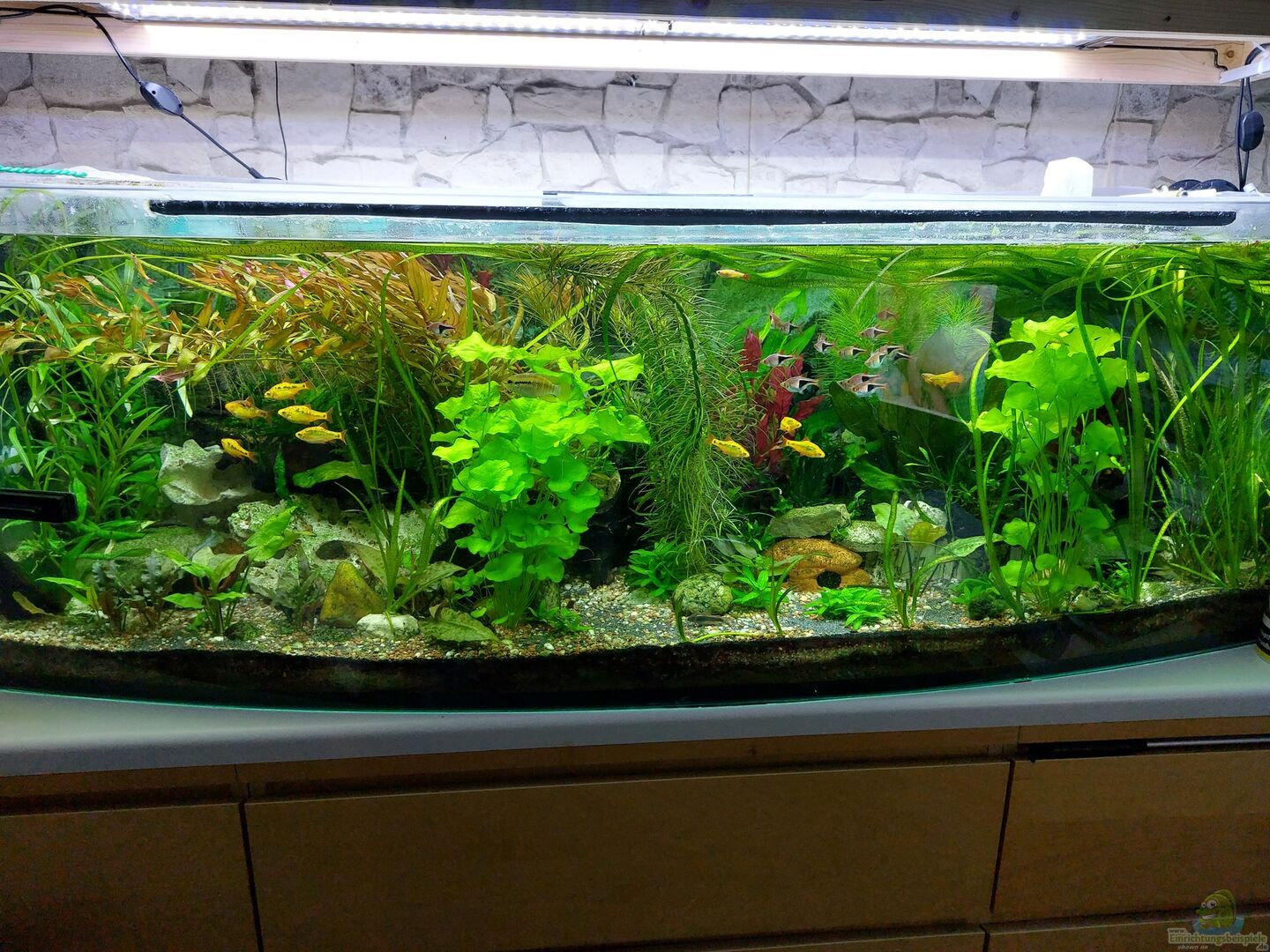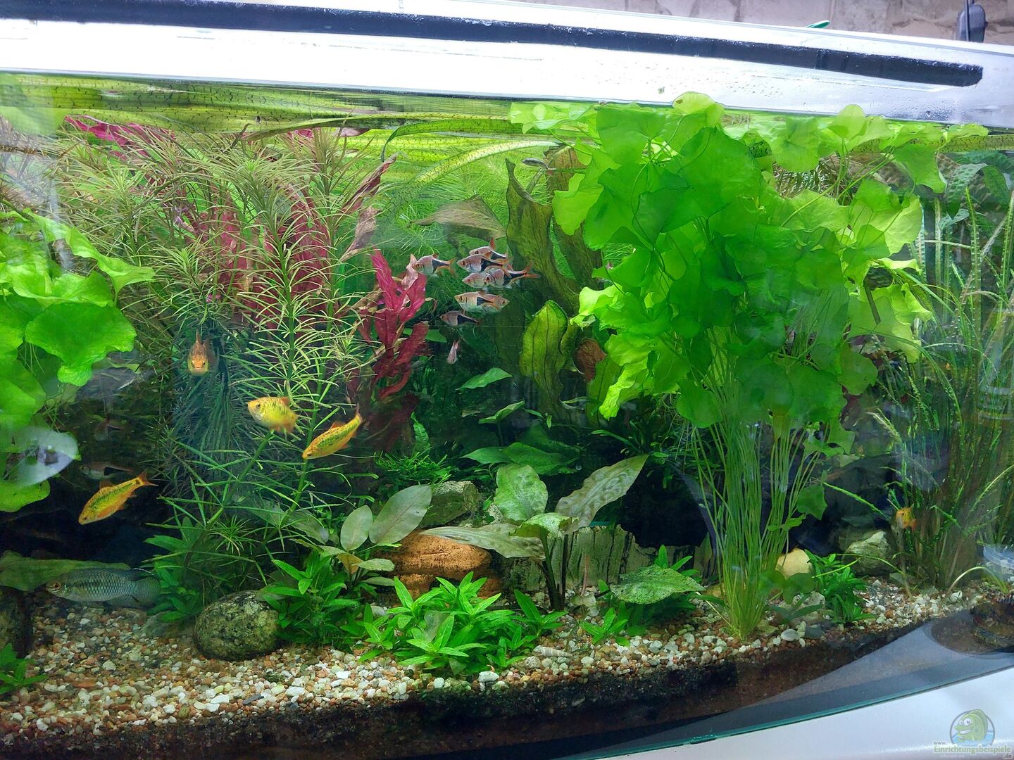 Optisch gefällt mir dein Aquarium ganz gut. Ich würde mir allerdings mehr Infos wünschen. Vor allem beim Besatz.