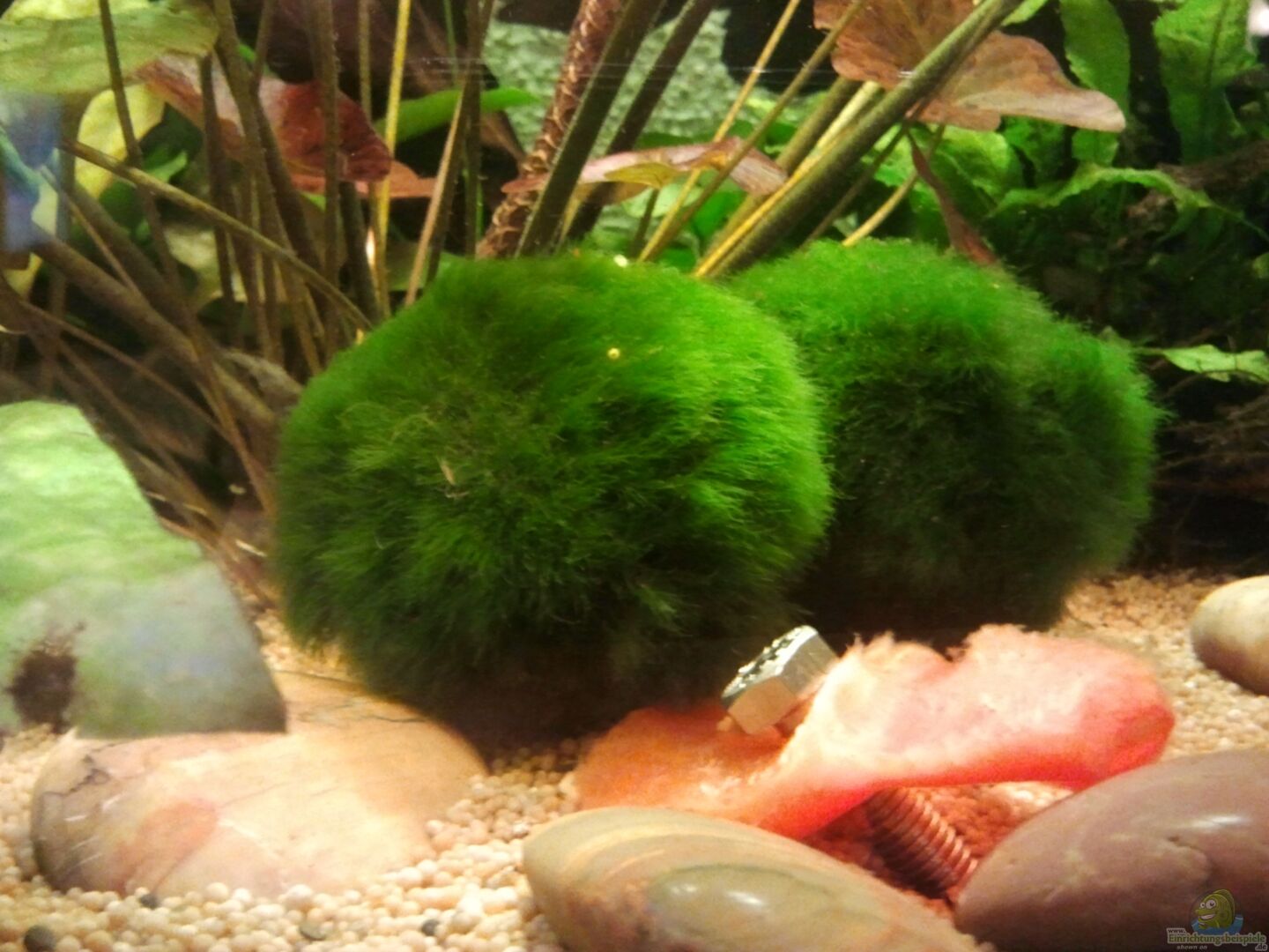 Das dominante Ancistrus- Männchen verjagt das rangniedere gerne von seiner Futterstelle. Daher wird Gemüse an zwei Stellen gefüttert. Ansonsten leben sie friedlich zusammen.