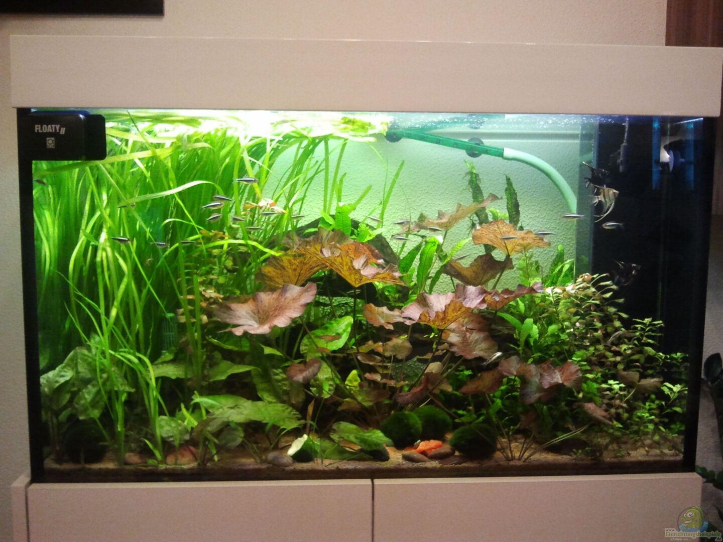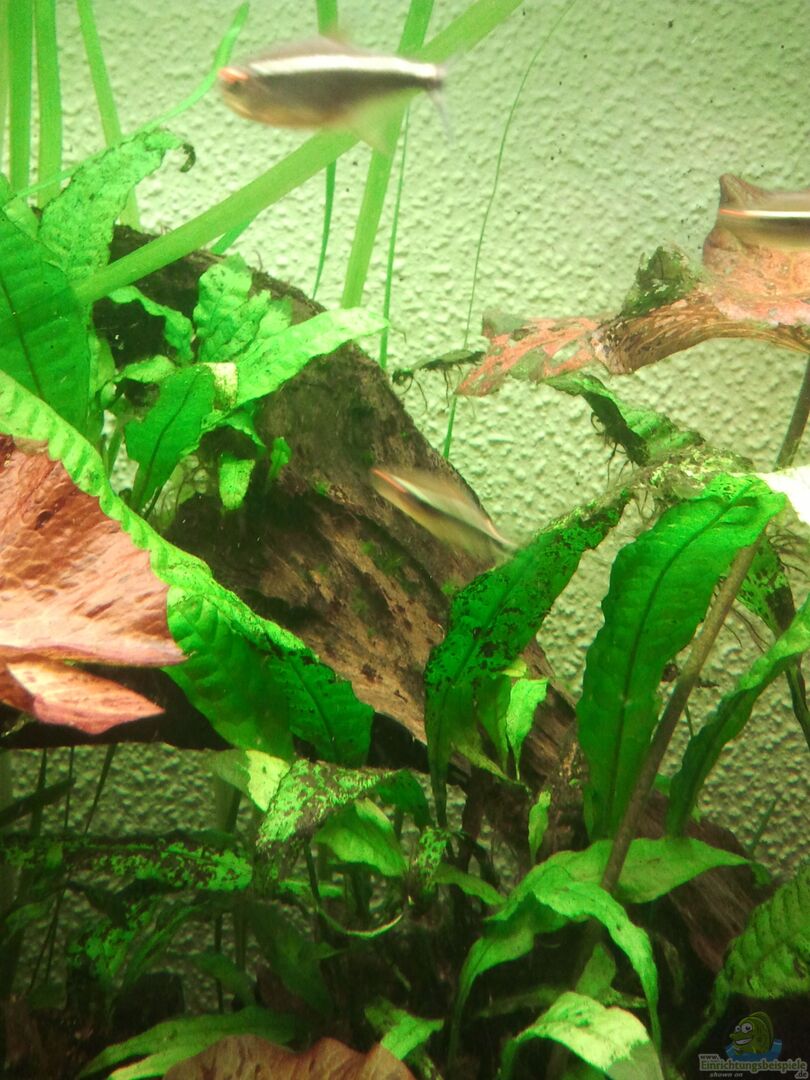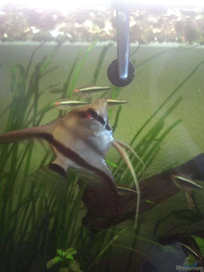 Die Neons schwimmen als Schwarm manchmal aber auch ohne Schwarmstruktur durch die Pflanzen, sind aber auch im freien Schwimmraum zu beobachten. Die Tiere sind ca. 3 Jahre alt und stören sich nicht an den Skalaren (genau wie auch die Skalare an ihnen ;) )