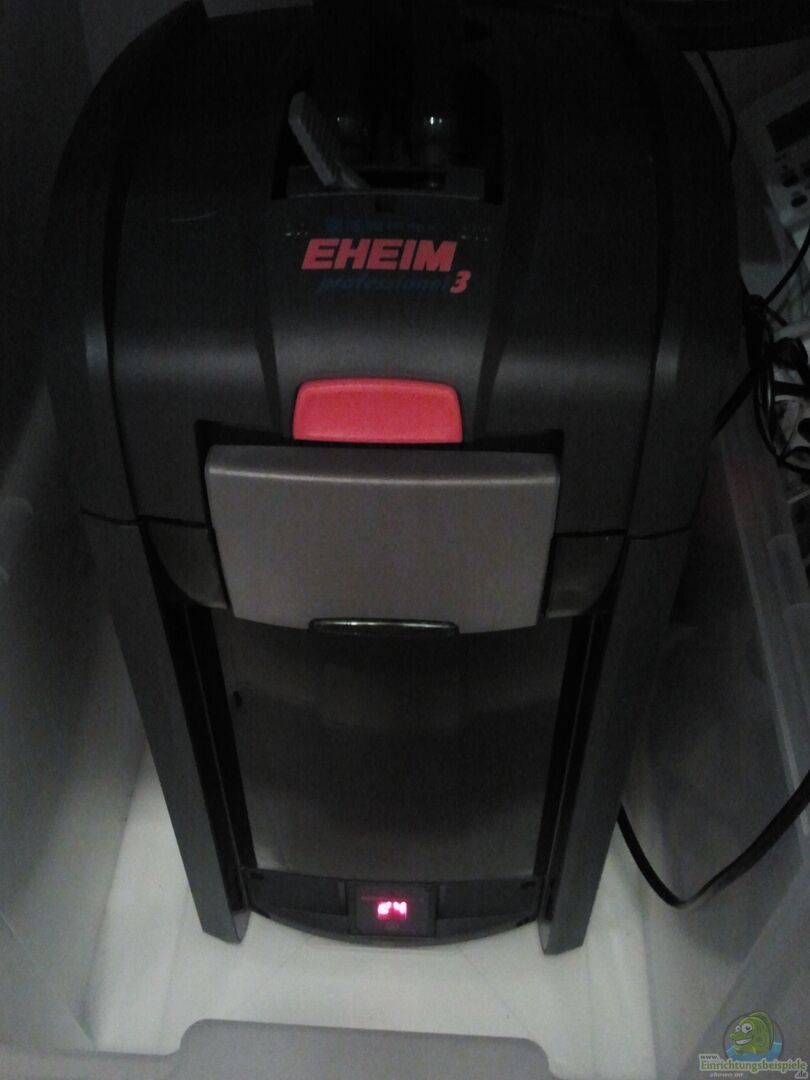 Bestückung: grobe Filtermatte, feine Filtermatte, Eheim MECHpro, Eheim bioMECH, Eheim SUBSTRATpro (nach Herstellerempfehlung)