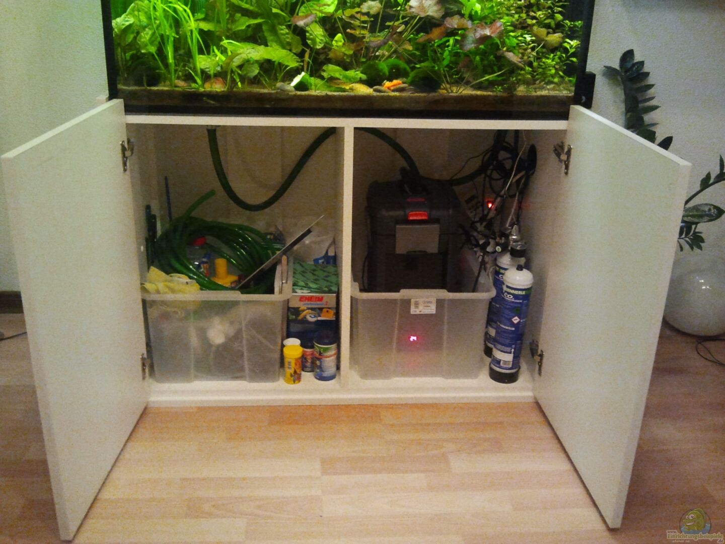 Das Wasser wird durch einen Stutzen, der sich auf dem Boden auf der linken Seite des Aquariums befindet, angesaugt und auf der rechten Seite des Aquariums kurz unter der Wasseroberfläche wieder in das Becken zurückgeleitet.