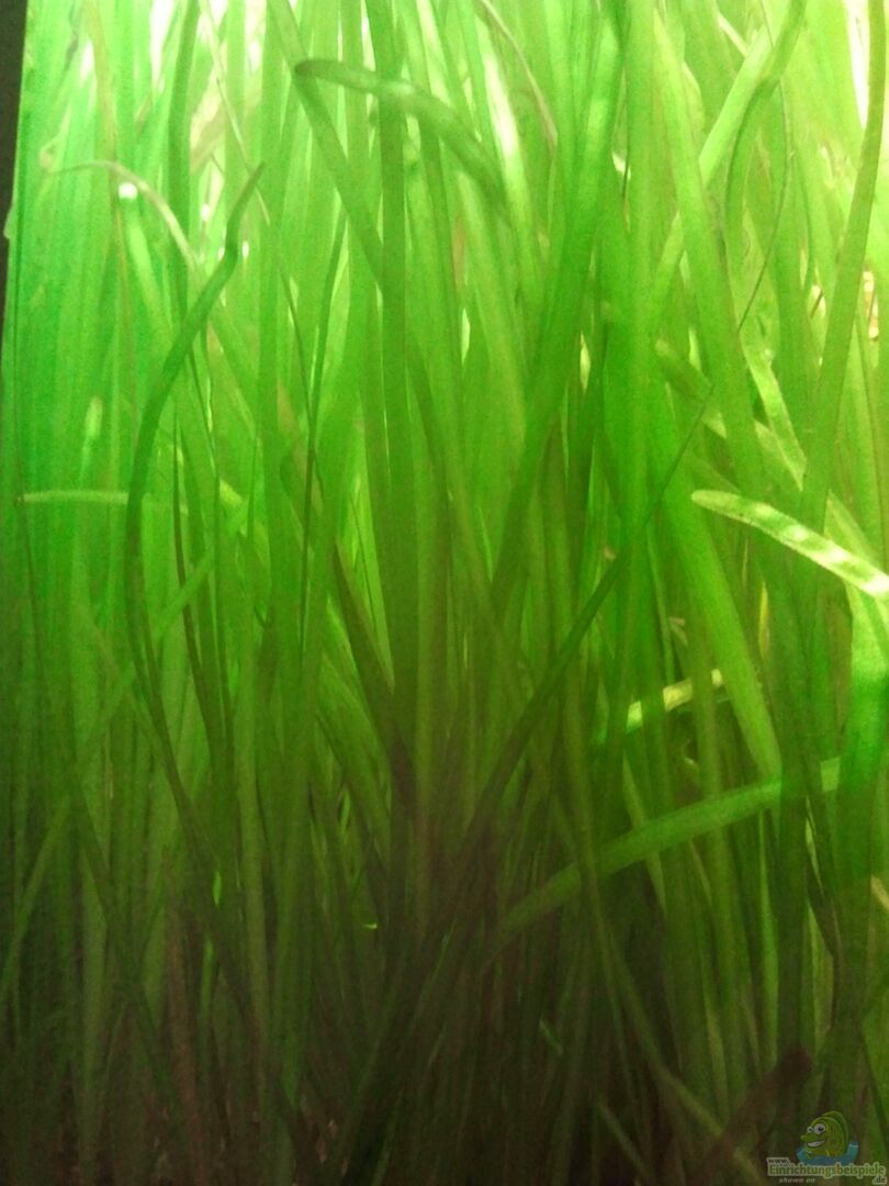 Diese vermehren sich sehr gut über Ausläufer und haben so bereits einen gro??en Teil des Aquariums besiedelt. Die langen Blätter von V. gigantea liegen auf der Wasseroberfläche und dunkeln so (zusammen mit S. molesta) einen Teil des Aquariums ab.