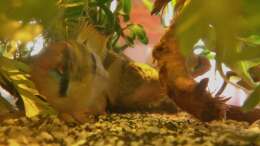 Unter der Moorkienwurzel bestehen einige Versteckmöglichkeiten, auch kann der "indischer Wasserfreund-Wald" dafür genutzt werden.