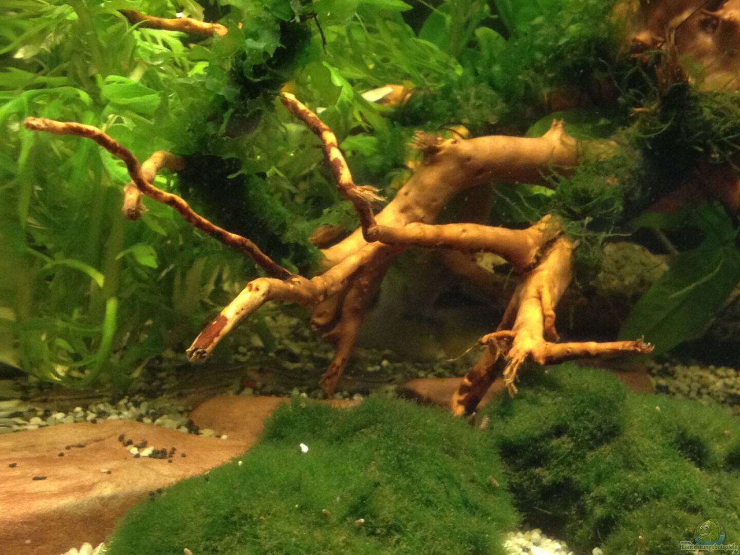 Ich habe versucht ein möglichst optimales Umfeld für die Danios zu schaffen. Die aufgeschnittenen Mooskugeln habe ich durch Java-Moos auf Stein gebunden ersetzt. Hier wurde eine Ablaich Möglichkeit geschaffen, wobei es nicht das Ziel ist die Danios zu züchten, was aufgrund ihres Appetits auf die eigene Brut und der neugierigen Corys auch eher unwahrscheinlich ist.