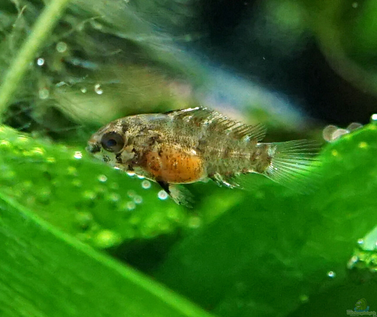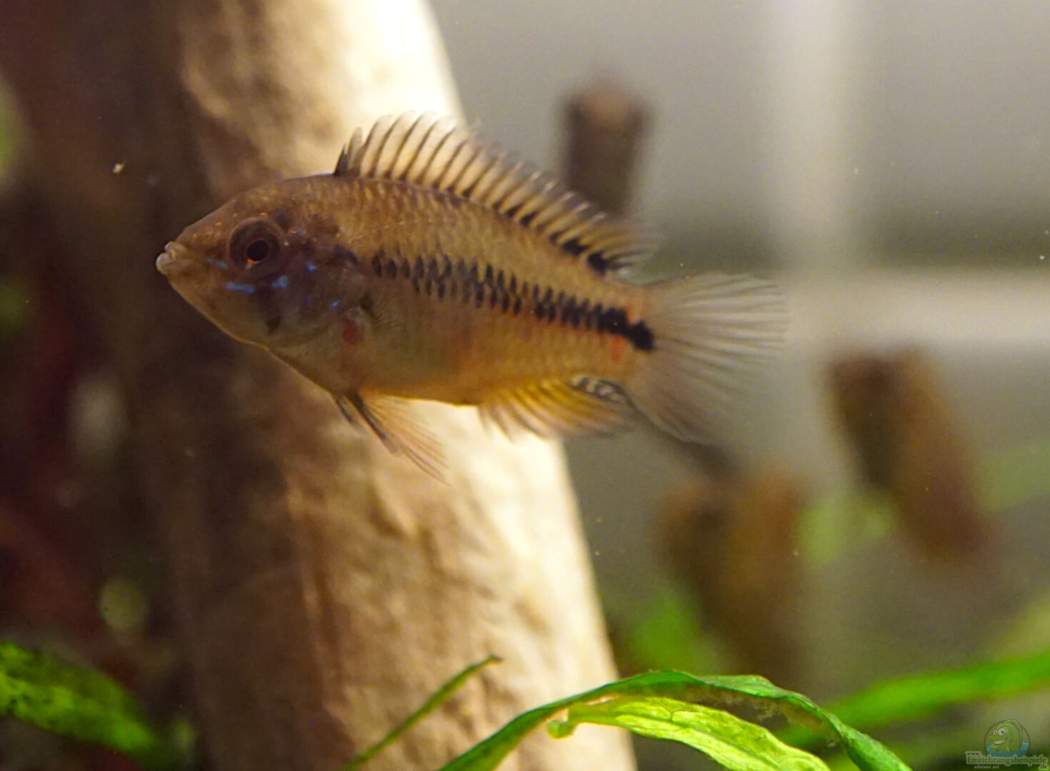 Das Paar hat kurze Zeit nach dem Einsetzen abgelaicht und mittlerweile ziehe ich 47 Jungfische in einem separaten Becken auf. Ein paar Jungfische (5+) sind noch im Becken.