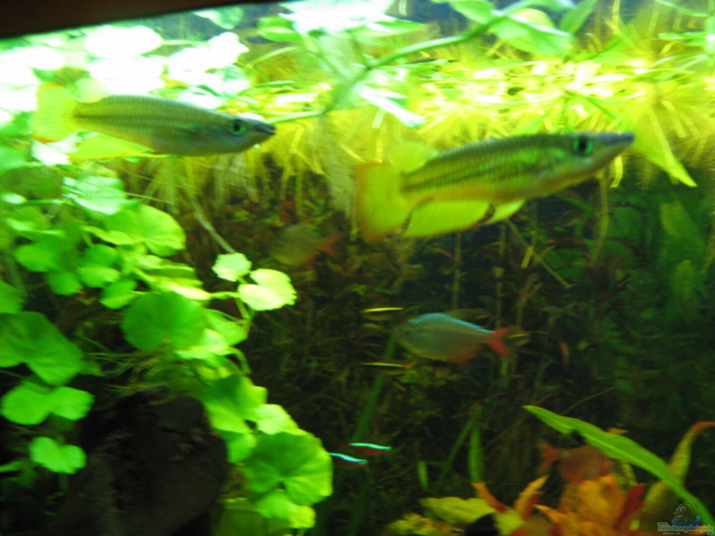 Hyphessobrycon columbianus 5 St., Hyphessobrycon eques 5 St., Paracheirodon axelrodi 11 St., Aplocheilus lineatus 2 St., Microgeophagus ramirezi (Paar), Pelviachromis pulcher 1m 2w, Otocinclus sp. 5 St., Pterophyllum scalare 2 St., Ameca splendens 2 St., Ancistrine L-Welse sp. (wahrscheinlich L71)