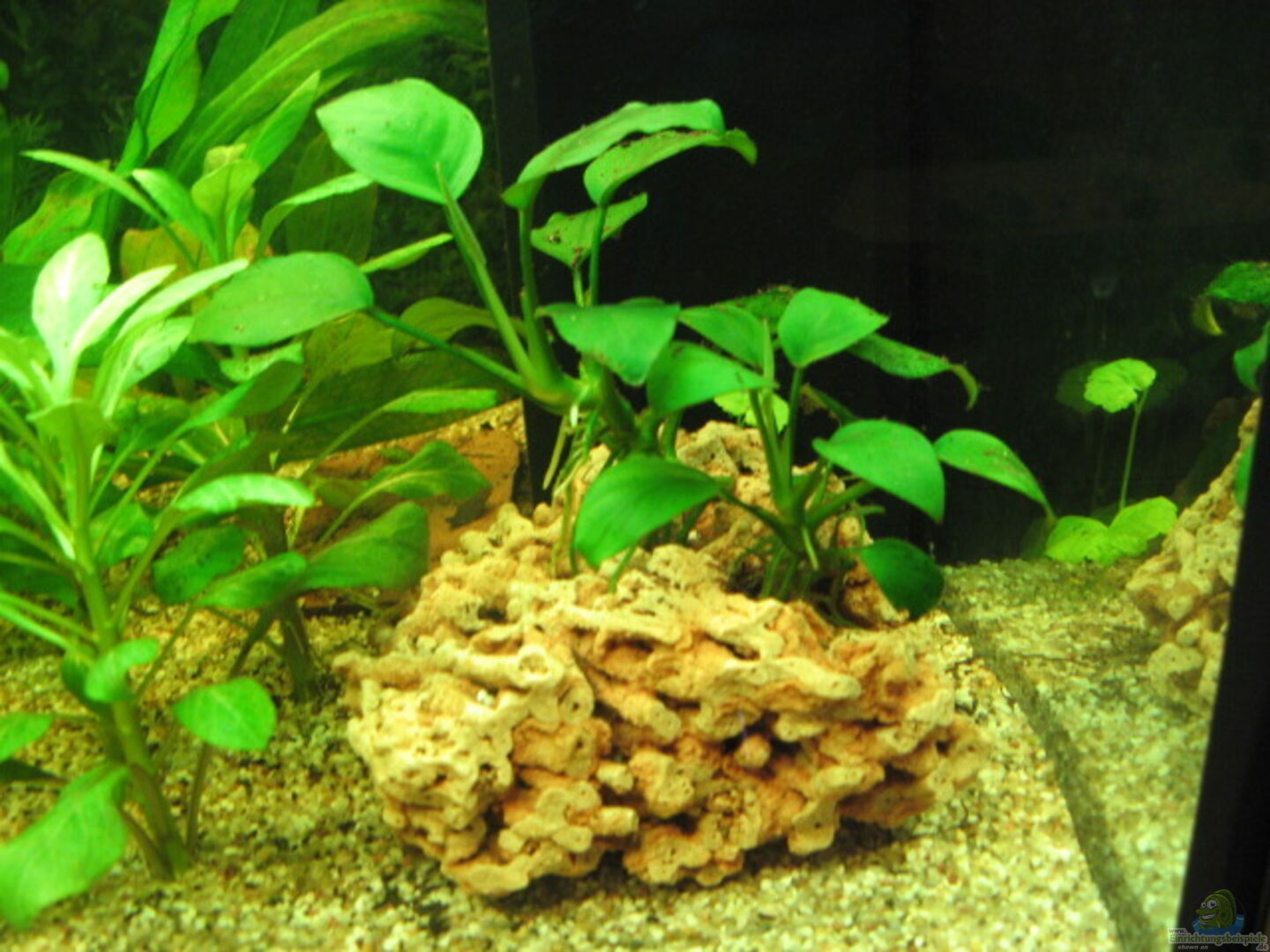 Elocharis acicularis, Echinodorus sp., Hydrocotyle leucocephala, Echinodorus bleheri, Nymphea lotus var. rupra, Valisneria spiralis, Anubias barteri var. nana (1x auf Wurzel, 2x auf Spaghettistein), Microsorum pteropus, Lobelia cardinalis, Hygrophila sp. rot, Pistia stratiotes (wird regelmä??ig abgesammelt), Cabomba caroliniana, Vallisneria gigantea