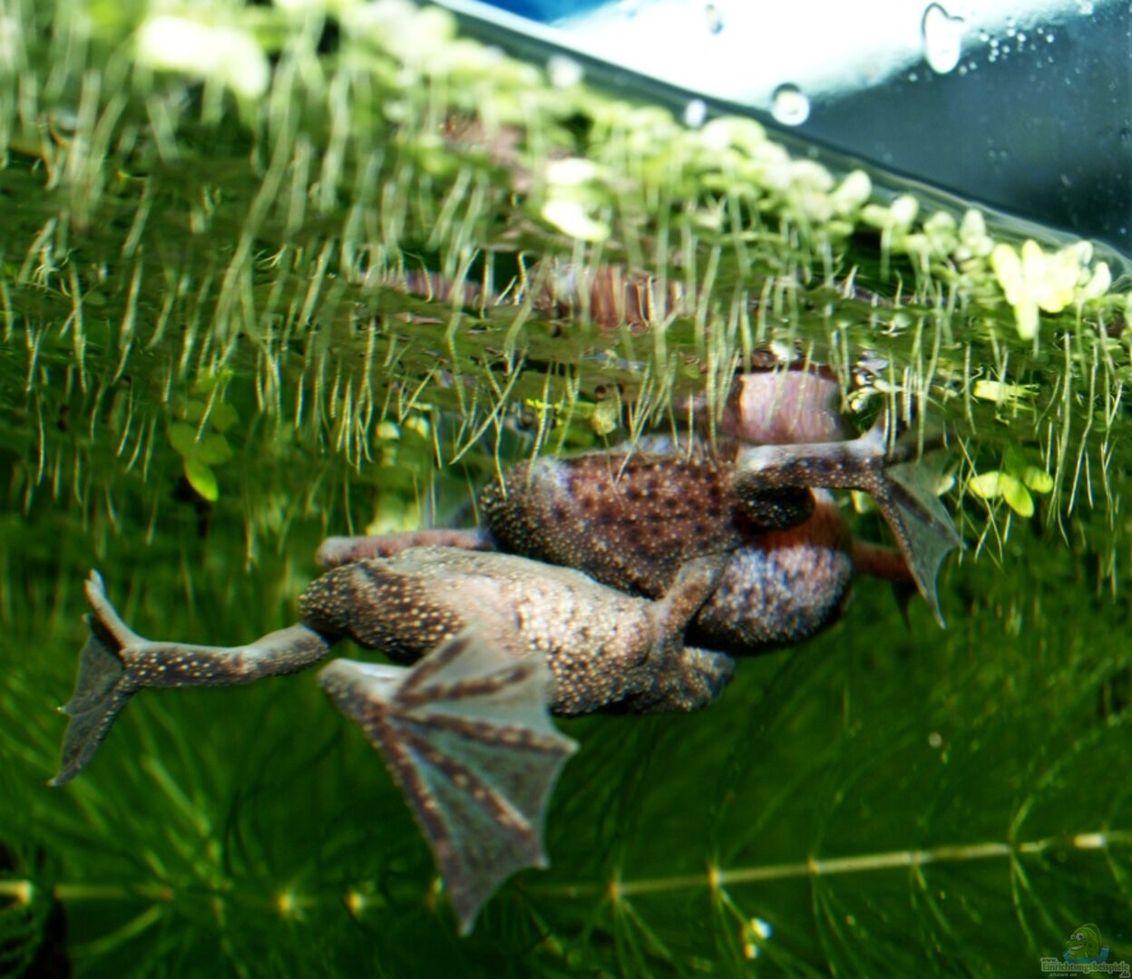 Ein tolles Zwergkrallenfroschbiotop hast du hier geschaffen! Tolle, auf die Bedürfnisse dieser interessanten Aquarienbewohner abgetimmte, Einrichtung. Allein die Tatsache, dass du die Tiere erfolgreich vermehren konntest zeigt, dass sie sich echt wohl fühlen bei dir und du alles richtig machst! ;-)