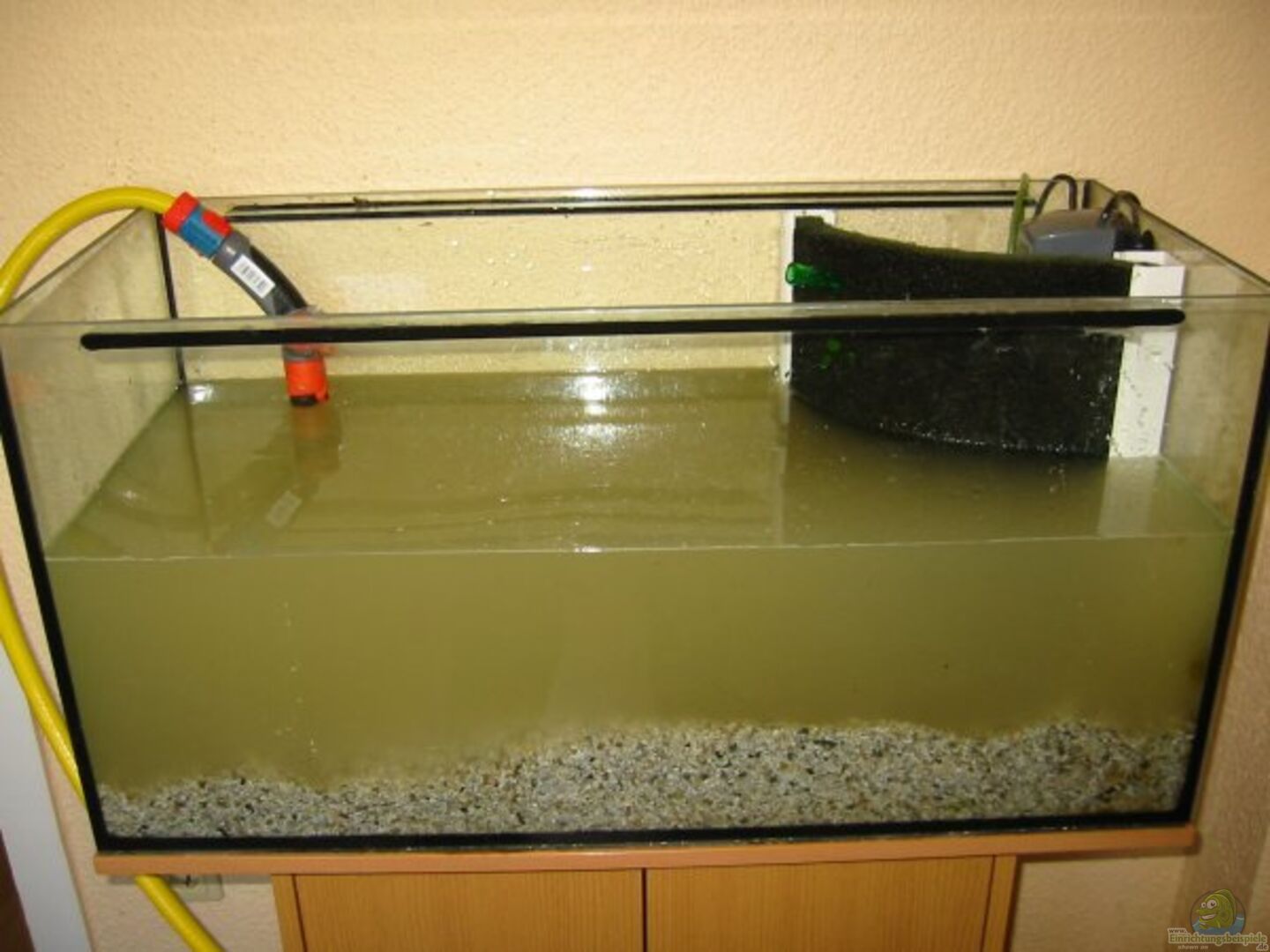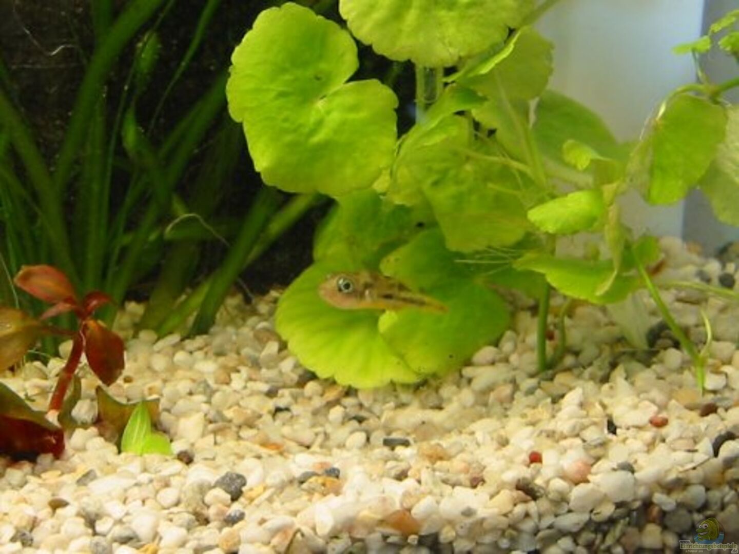 In der Mitte und im Vordergrund wurde eine ´Schwimm- und Fütterungszone´ eingerichtet, hinten und vor allem vor dem Filter soll alles schön zuwuchern. Das dauert natürlich noch.