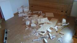 Rückwand und Teile der Deko sind jetzt fertig mit Fliesenkleber beklebt. Muss jetzt nur noch durch härten, dann kann ich die Rückwand noch mal leicht über schleifen.