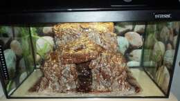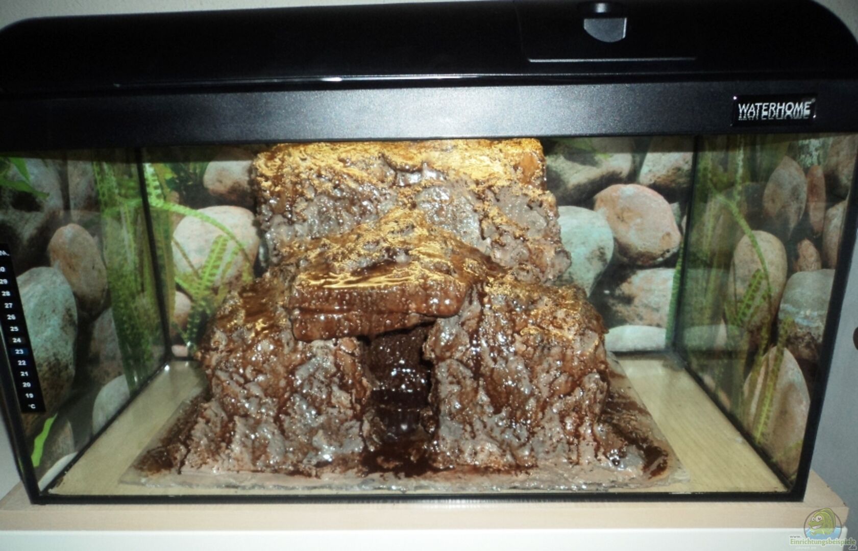 Selbstgebauter Felsen aus Tonröhren diese stehen auf einer 1 mm dicken Plexiglasplatte. Somit kann der Felsen Problemlos rausgenommen werden.
