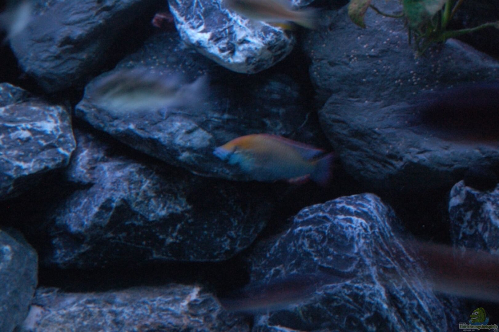 Der Urmalawi, macht sich sehr gut. Der dominante Bock steht prächtig in Farbe und er macht den Weibern regelmä??ig die Backen voll. Nachwuchs kommt allerdings selten durch. Hierbei ist immerwieder schön zusehen, dass diese Art einen starken Weiberüberschuss bei den Jungtieren hat. Männchen können im zunehmenden Alter aggressiv untereinander sein. Sollte dies irgendwann der Fall sein, wird ein Männchen abgegeben.