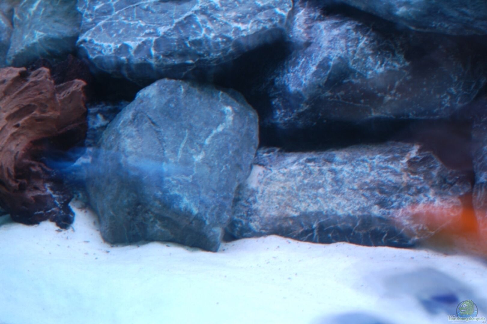 Hinter den Steinen gibt es viele Durchschwimmöglichkeiten, des weiteren wurden mehr Höhlen geschaffen als Fische vorhanden sind, auch die Krabbe verkriecht sich oft in einer der grö??eren Höhlen.