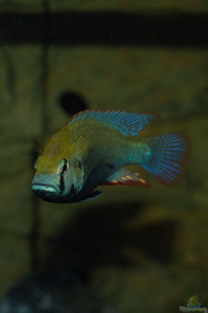 Der Aulonocara ist noch recht klein und zeigt noch nicht sein volles Farbkleid, dies ist allerdings schon weit ausgeprägter als am Anfang. Beim Balzen kam es schon zu den ersten Ahaeffekten. Die Aulonocara sollen jedoch irgendwann ein eigenes Becken erhalten.