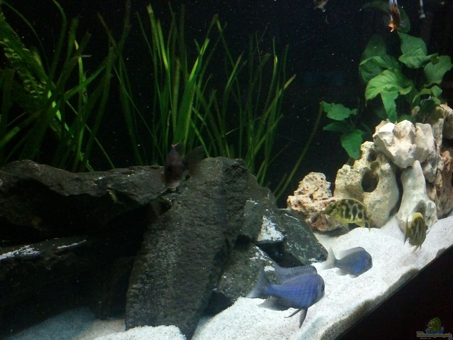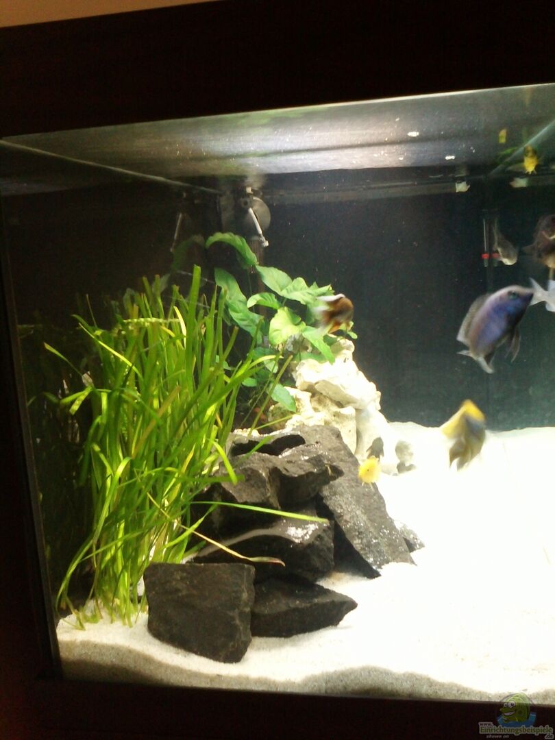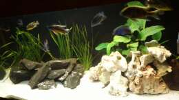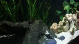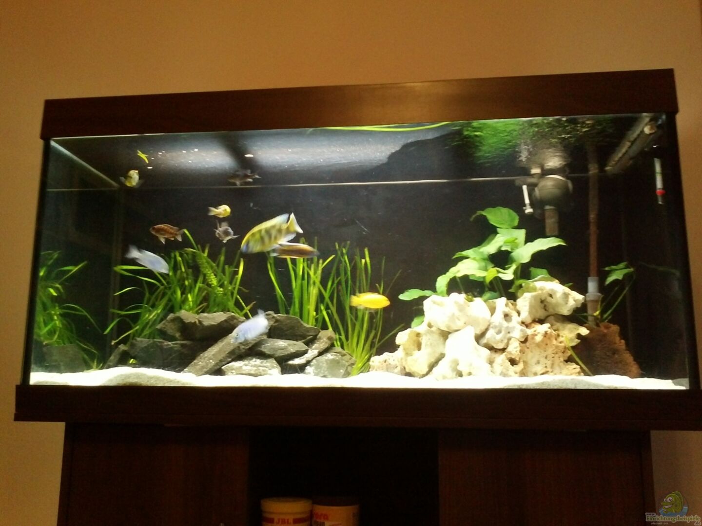 Was die Einrichtung angeht, so bin ich kein Freund von Lochgestein. Dazu die Mischung mit schwarzem Basalt ist - na ja, nennen wir es mal au?ergewöhnlich. Ich habe auch deshalb was gegen Lochgestein, da nie auszuschlie?en ist, dass es irgendwo scharfe Kanten gibt, an denen sich die Fische verletzten könnten. Wenn du es komplett gegen Basalt tauscht, hättest du schon dadurch eine schummrigere Optik. Dazu der dunklere Sand und es ist schon deutlich besser. Deine Beleuchtung ist deutlich überdimensioniert. Entweder, sofern der Leuchtbalken das kann, kannst du eine Röhre ausschalten und die vorhandene mit Farbfolie an die Farbspektren der Malawihabitate anpassen, oder du tauscht eine Röhre gegen ein aktinisches Licht und dunkelst beide Röhren noch mit ordentlich Alufolie oder Fliegengaze ab. Ideal wäre natürlich LED, aber das verursacht natürlich erst mal Kosten.