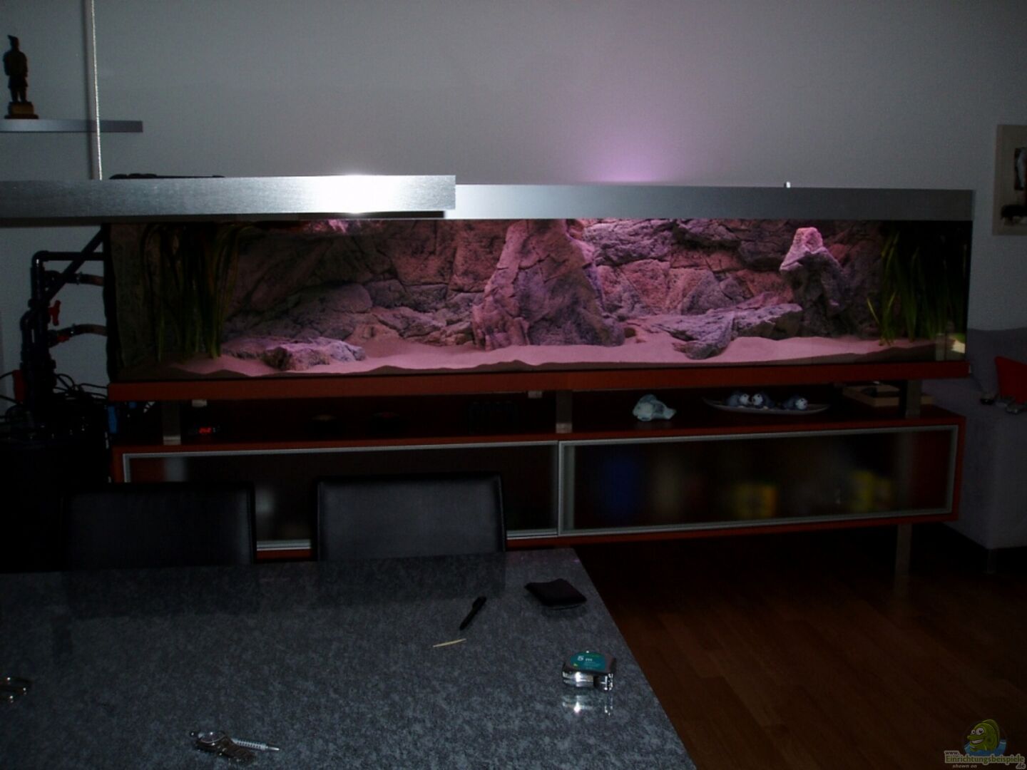 4-1-2015: musste becken verkaufen und ist in oktober 2014 abgehollt. Dass 3 m becken hat die suche nach eine neue wohnung schwerig/unmöglich gemacht. In März kommt ein neues becken (1.60x80x65, also brutto über 800 L). Es wird ein Mbuna becken mit 3 gruppen (3/7): Pseudotropheus cyaneorhabdos, Metriaclima sp. msobo und Labidochromis sp. hongi Red Top. Vielleicht noch ein harem Pseudotropheus Socolofi dazu. Neues becken wird ebenfalls designed und produziert durch Fessler Aquaristik in der Schweiz.....
