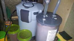 Frontscheibe Weisglas Filterung 3 Kammer mit 3500 Oceanrunner zusätzlich Topffilter mit UV Brenner und 5 Liter Nitratfilter