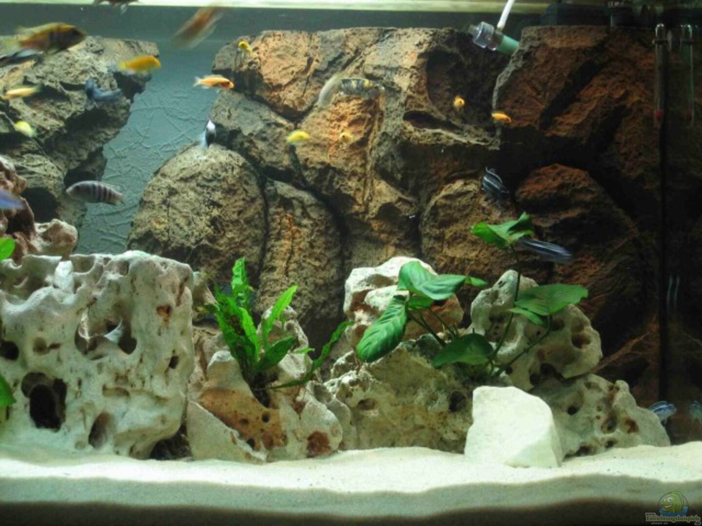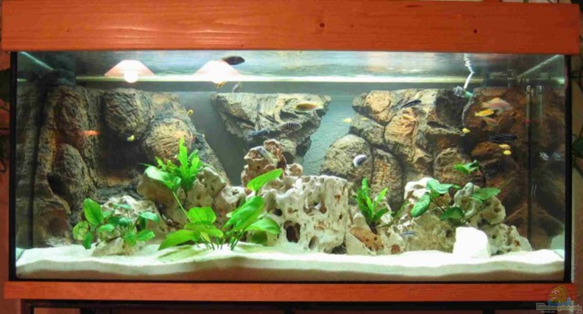 Die Einrichtung gefällt mir sehr gut.Die Rückwand passt einfach.Es ist toll, dass du nicht auf Pflanzen verzichten wolltest.Die Technik stimmt auch.Nur könnte man bei so einem gro?en Aquarium aus dem Fischbesatz mehr machen, aber du da ja noch ein Anfänger bist, hast du die richtigen Buntbarsche für den Anfang gewählt.