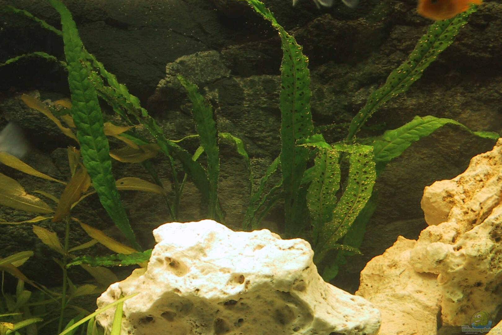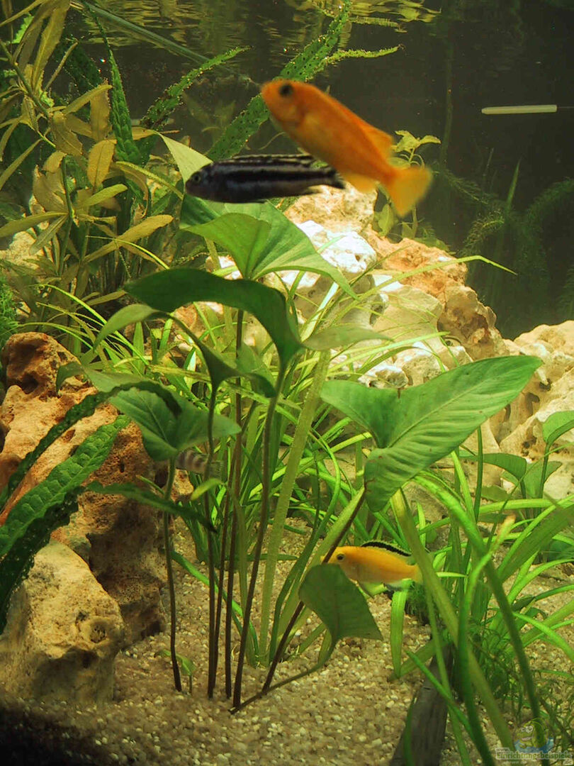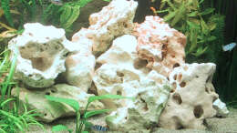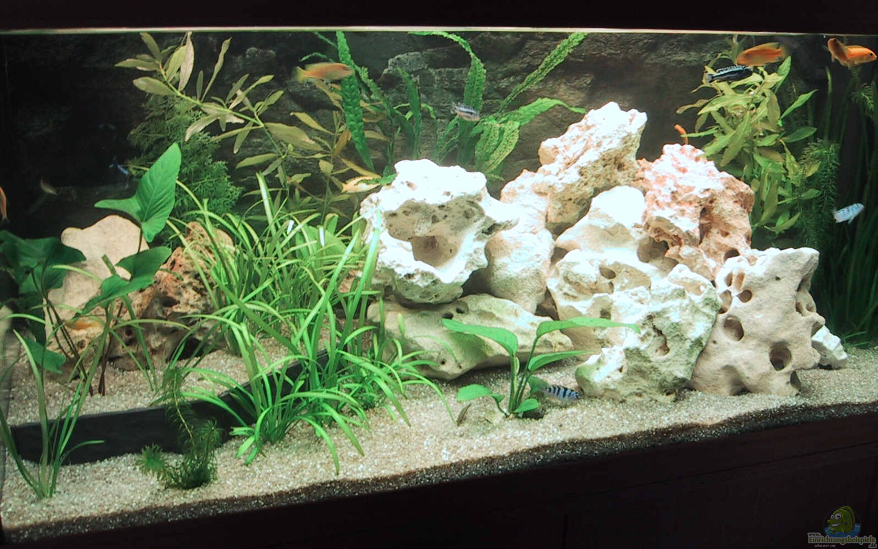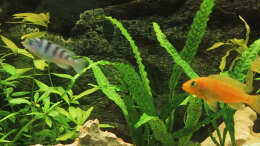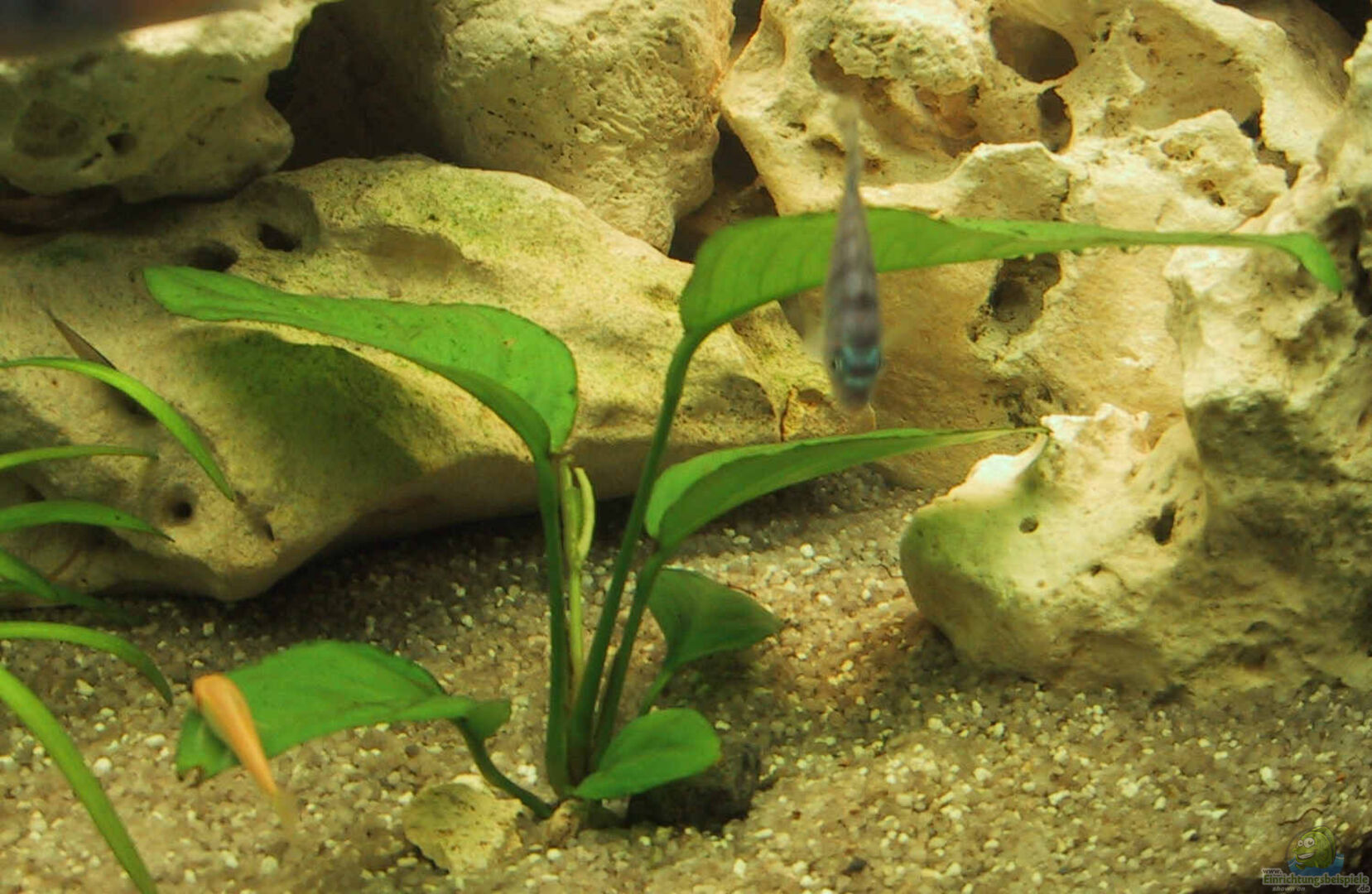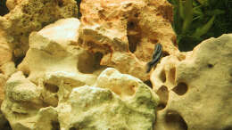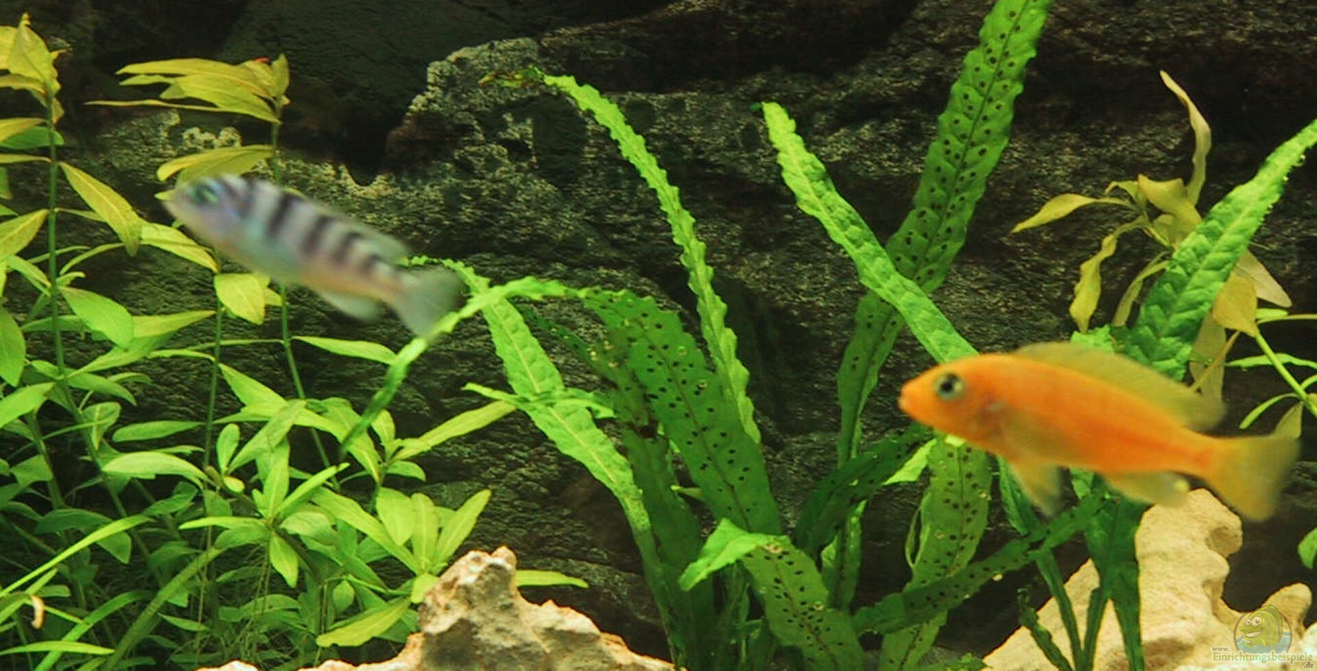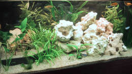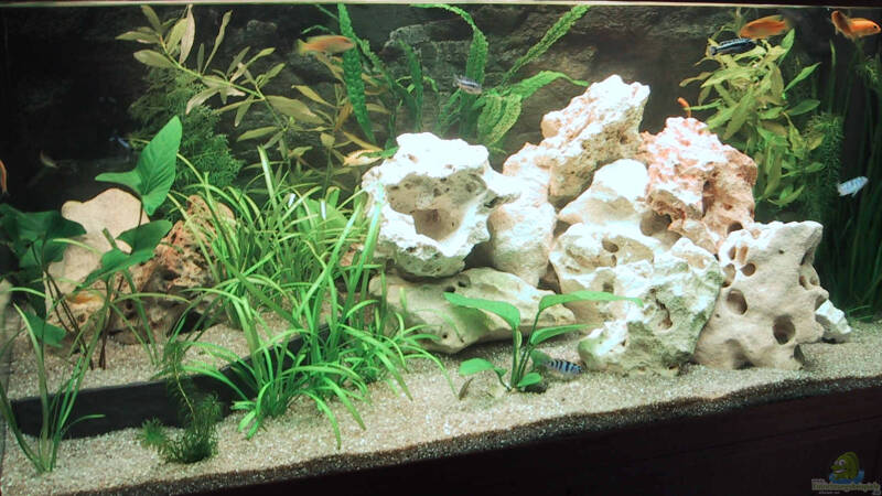 Ein sehr kleines Becken, das auf den ersten Blick sehr schön eingerichtet erscheint, allerdings dürften die meisten der offensichtlich frisch eingesetzten Pflanzen die Gesellschaft der Malawis nicht lange überleben und ob der Juwelinnenfilter mit zahlreichen Pflanzenresten fertig wird, wage ich zu bezweifeln. Die künstliche Terasse wirkt sehr unnatürlich und da auch Mbunas dazu neigen Kies und Sand umzuschaufeln, dürfte das Bauwerk bald abgegraben sein. Saugschmerlen gehören nicht in ein Malawibecken.