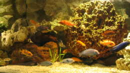 grosse Höhle aus Kunststoff die integriert im Lochgestein ist.Am 01.12.05 raus genommen und Steine neu angeordnet wegen Beckenreinigung