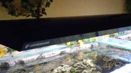 Seid mitte Dezember hängt über dem Becken eine 180cm lange Giesemann sunrice Lampe.Sie hat 4x T8 Röhren mit je 80 Watt. Zwei freshwater und zwei daylight, die über einen Dimmer geschaltet sind.