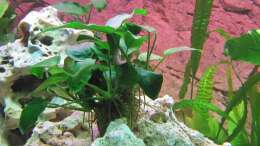 Anubias barteri ist wohl die bekannteste Vertreterin der Gattung Anubias. Es gibt verschiedene Varianten, welche sich im Habitus zum Teil deutlich voneinander unterscheiden. Die eigentliche Anubias barteri wird im Aquarium bis zu 35cm hoch und ist in der Haltung recht anspruchslos. Sie kann sowohl eingepflanzt im Bodengrund, als auch aufgebunden auf Steinen, Wurzeln oder anderen porösen Dekorationsmaterialien verwendet werden
