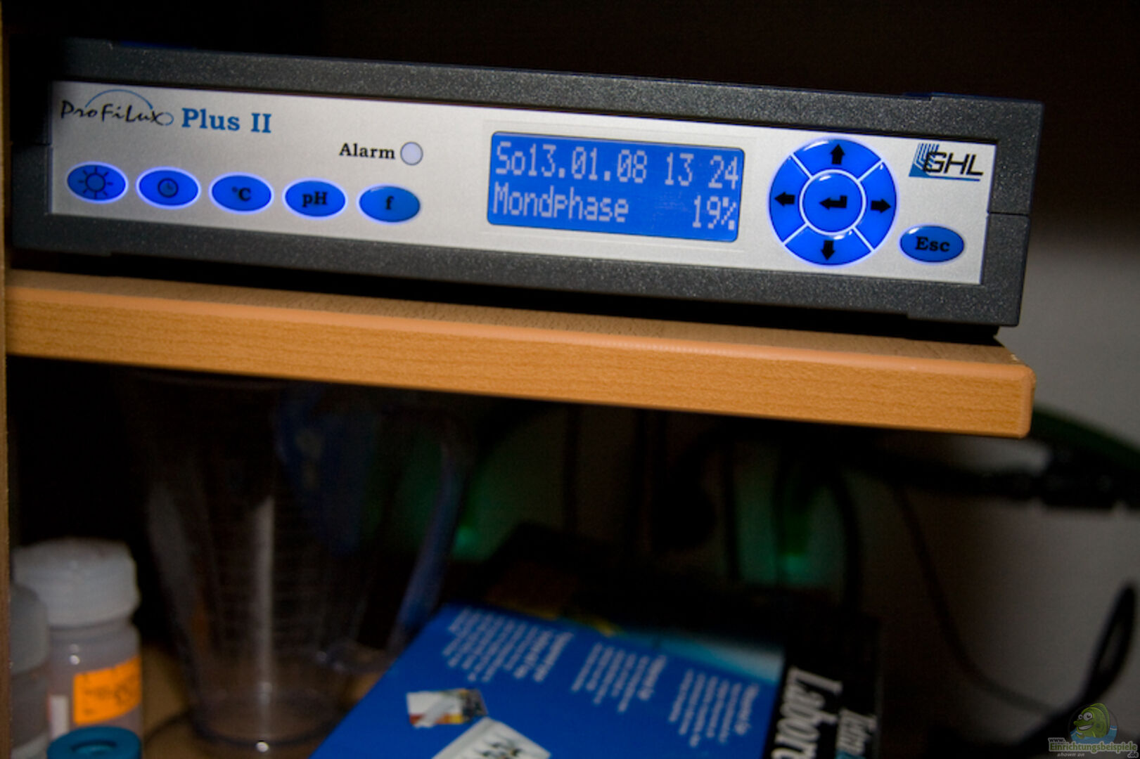 GHL Aqauariumcomputer, Temperatur und PH-Wert Messung, UV-Brenner, Strömungspumpen. Sauerstoffpumpe zum Regeln des PH Wertes über den GHL Computer (Ich habe noch nie einen solch stabilen PH Wert wie mit diese Konstellation gehabt !) Kleine zusätzliche Pumpe angeschlossen an zusätzliches Leitungssystem quer durch die Abdeckung zum simulieren von Regentagen, wird ebenfalls über Computer gesteuert. Es regnet dann immer mal :-)