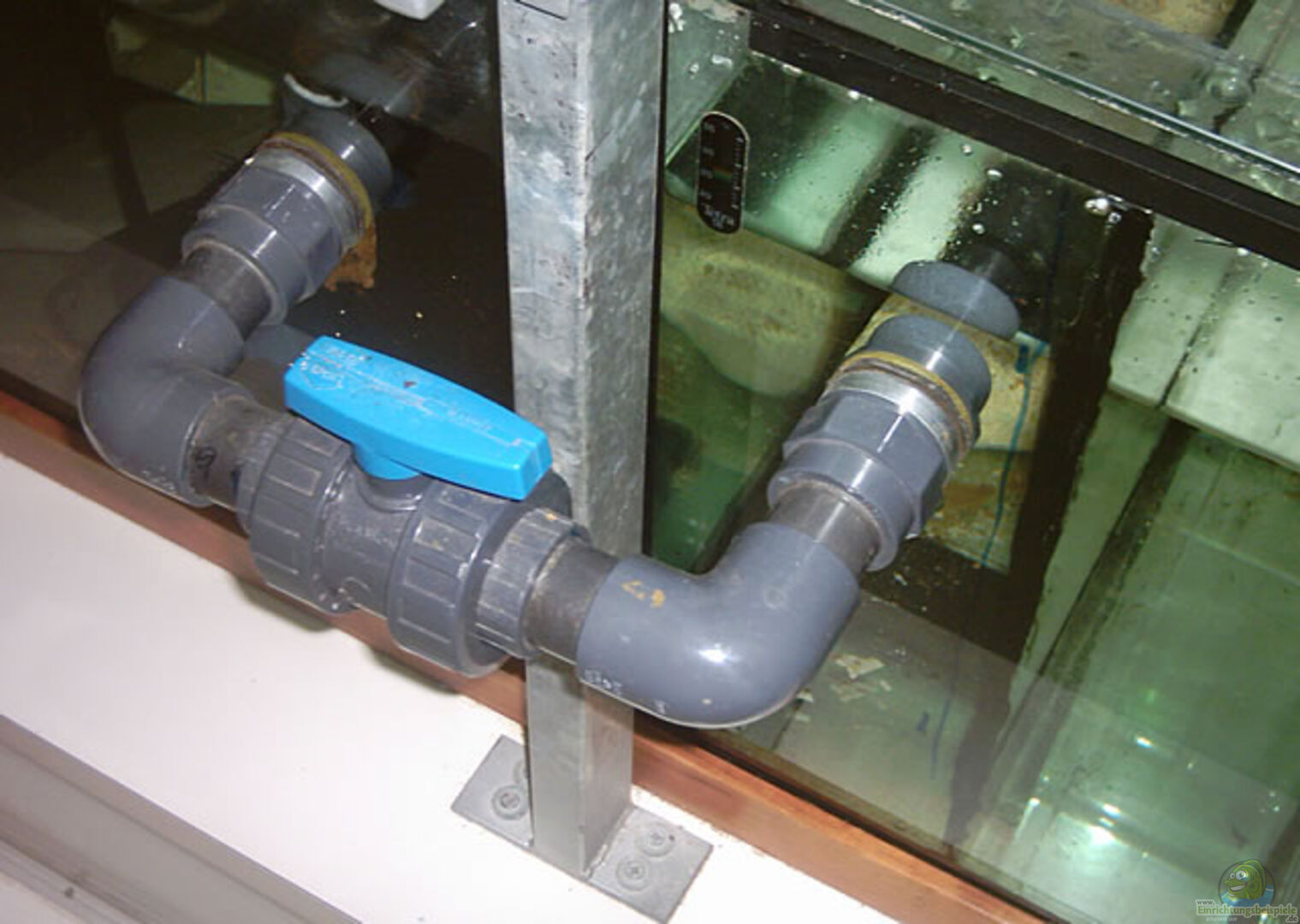 Das Schaubecken ist mit 10 weitern Becken über die gesamte Filteranlage gekoppelt.3 Becken mit je 450 Liter und 7 Becken mit je 125 Litern Inhalt. das gesamte Wasservolumen umfa??t 5800 Liter. Die aufgeführten Becken dienen der Aufzucht von Jungfischen.