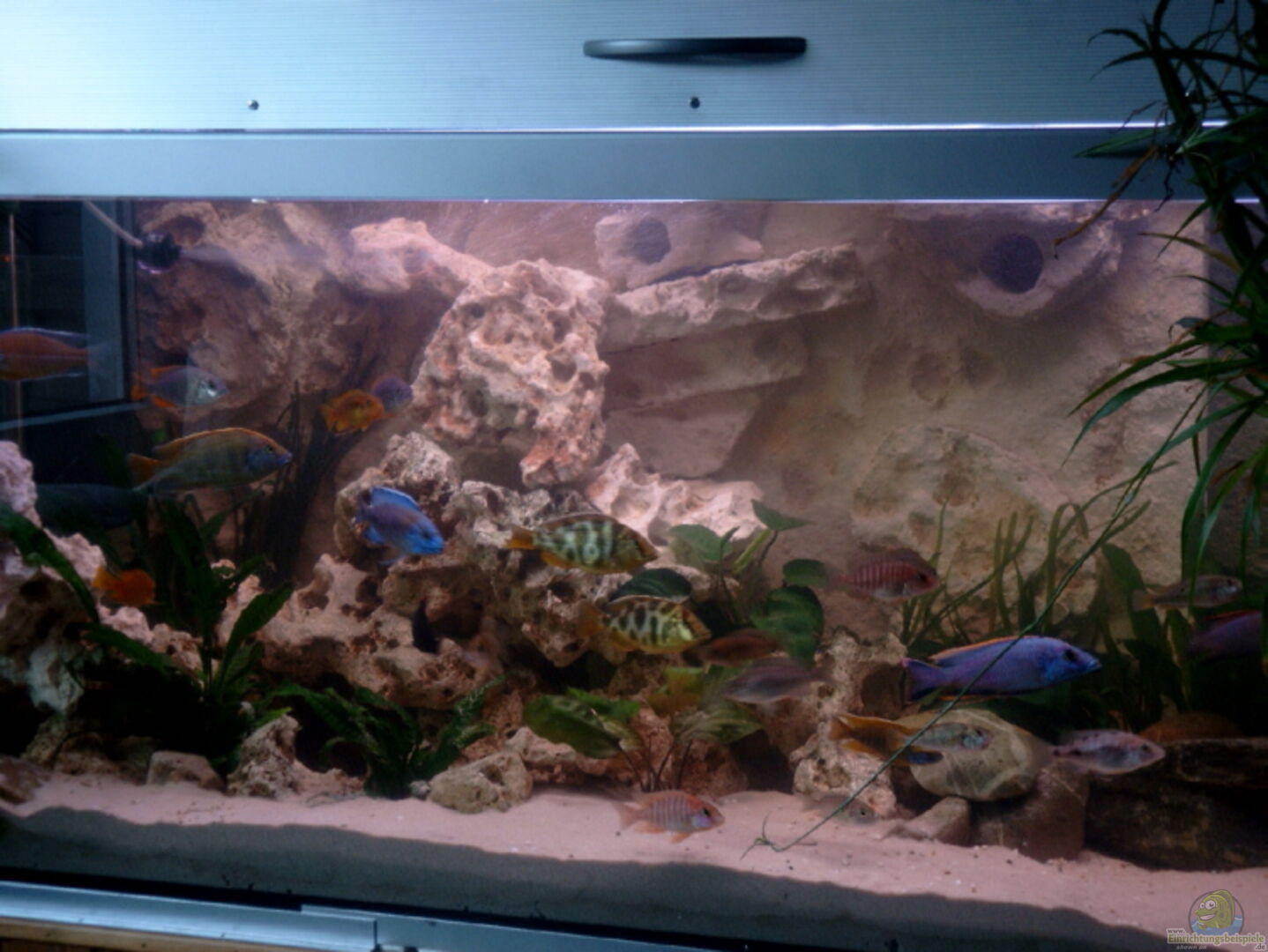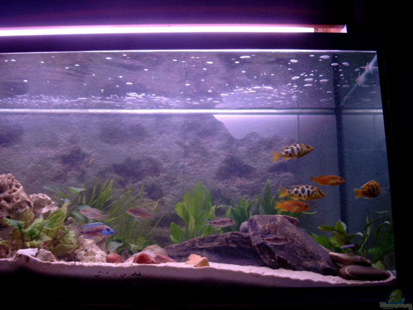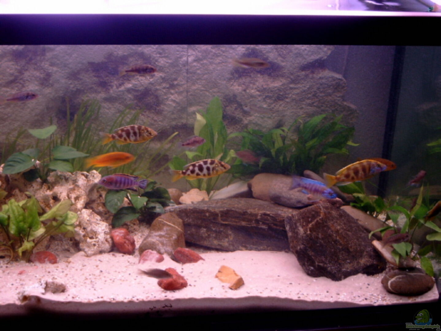 10.10.06:Beleuchtungsversuch, nach Tipp von einen sehr erfahrenen Beckenbesitzer in unseren Reihen und mehrmaligen Becken-des-Monats-Gewinners, seit heute mit nur noch einer Leuchtröhre 1x36 W Dennerle Trocal de Luxe African-Lake.