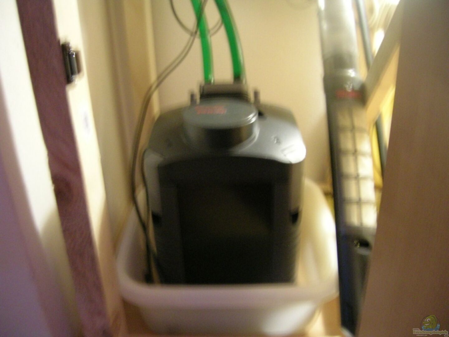 Rückwand selber gebaut. 2cm Styrudurplatten mit Aquariumsilikon an die Scheiben und den Boden geklebt.Dann die Steine aus einem Kieswerk aufgestapelt und mit Brunnenschaum ausgeschäumt. Als er trocken war zwischen den Steinen herausgekratz das sich viele Höhlen bilden.Hält echt super. An den Ecken habe ich Ansaugung Auströmer und Heizung eingebaut.Kann komplett durchschwommen werden.