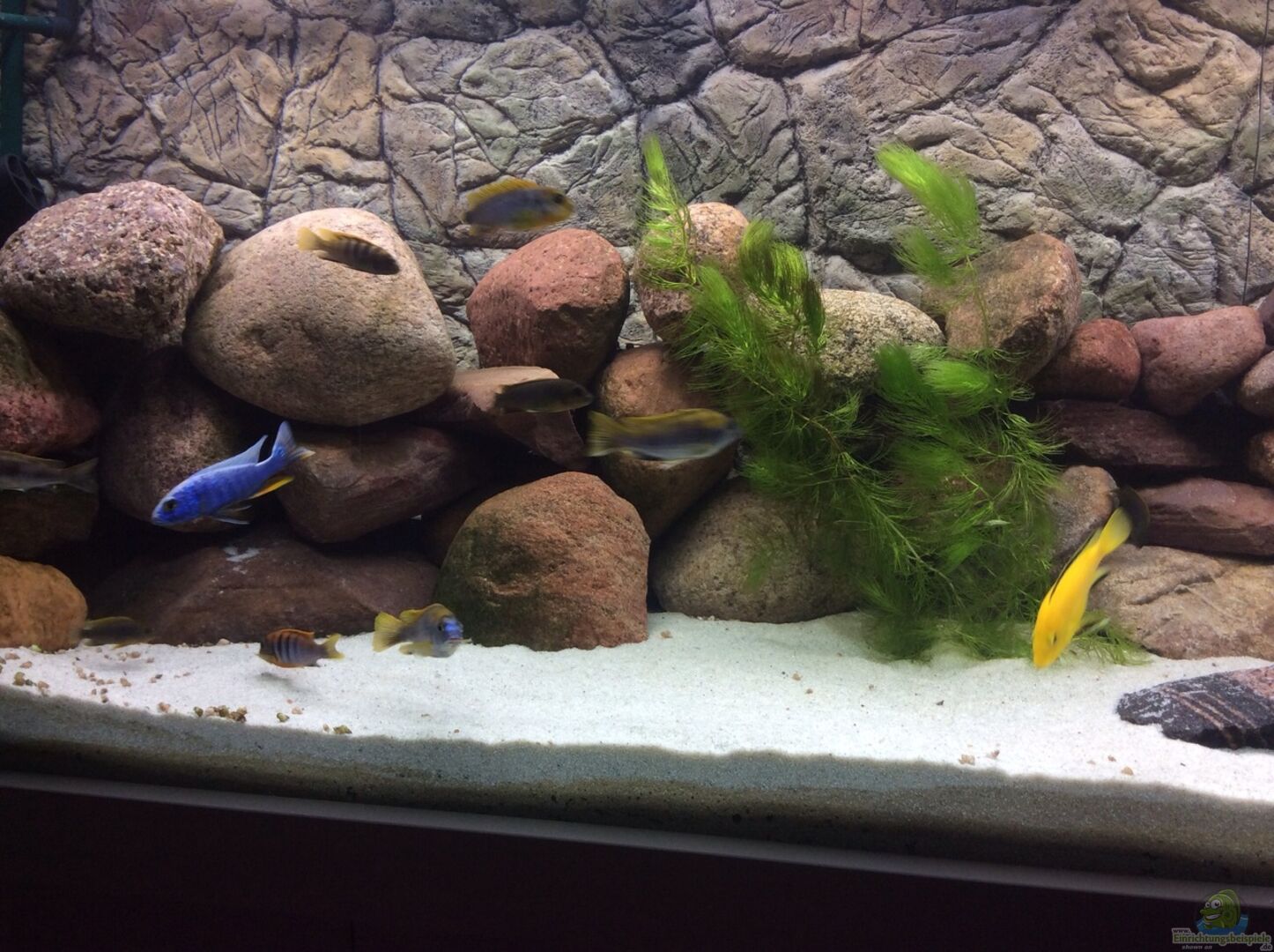 Fütterung erfolgt unregelmä??ig, bzw alle 3 Tage werden Wasserlinsen aus einem anderen Aquarium entnommen und ins Malawibecken eingebracht.