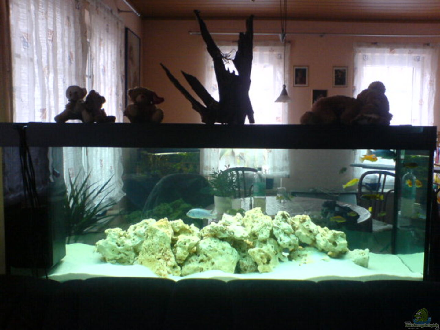 aber was ich wirklich nicht gut finde ist das Becken so als Raumteiler zu benutzen, ich bin dahingehend sehr gespalten was dieses Thema angeht...bei manchen gehts aber gut is es nicht....Begründung :Malawis sind gewohnt das das Licht immer von oben scheint, bei dir sieht man auf den Fotos das überall Lichteinfall ist..also ungünstig, dann damit in Verbindung die Aufbauten...sie haben einfach keine natürlich gro?en Rückzugsräume.....(net böse gemeint alles) aber leider auch hier wahr....!