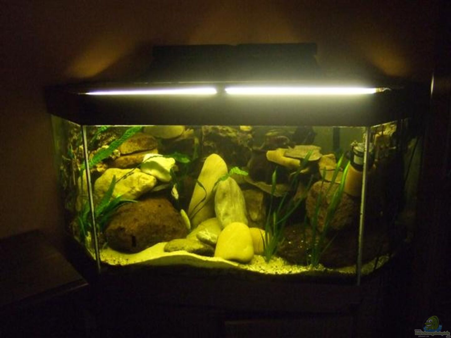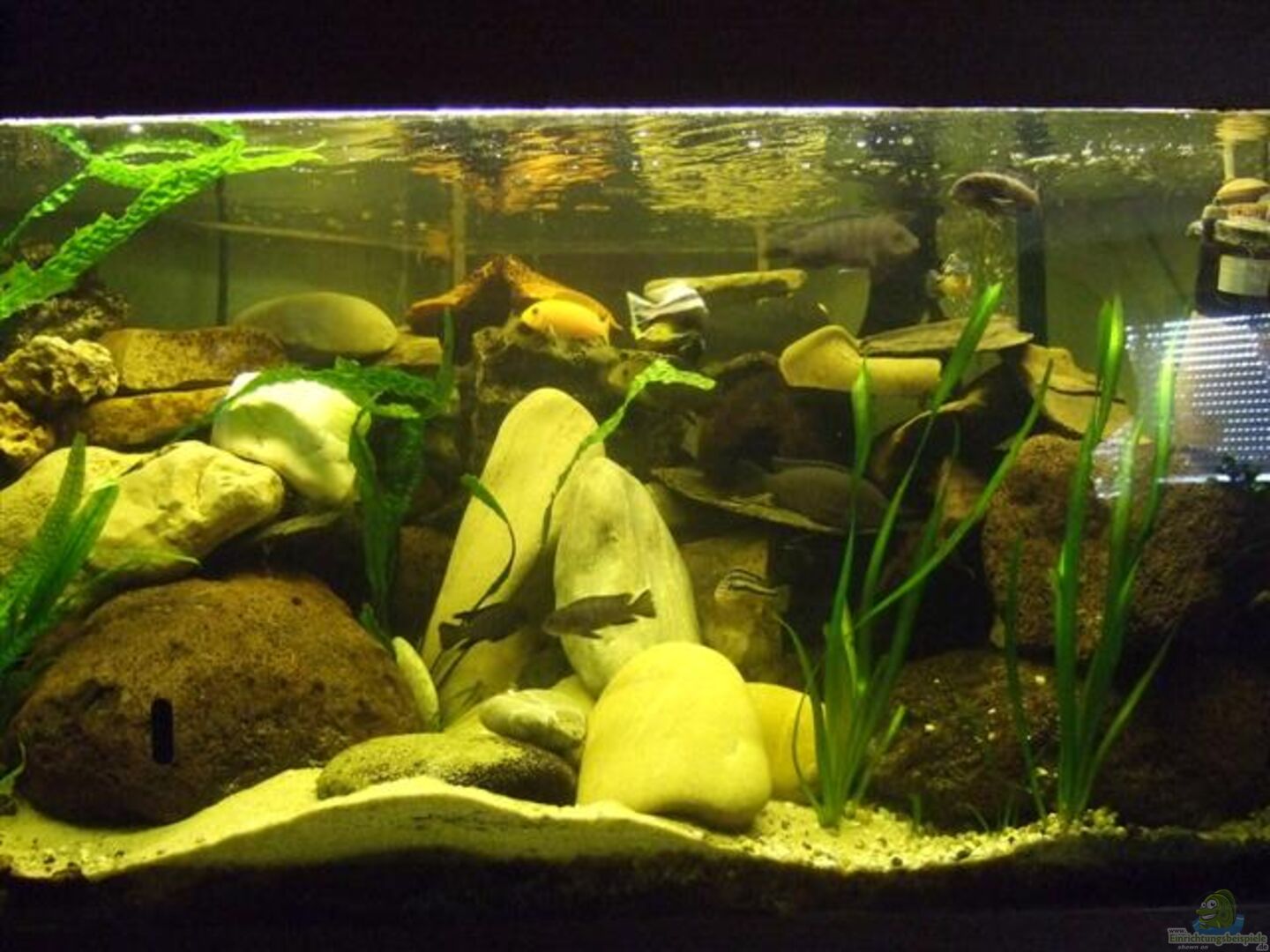 Hallo, habe hier noch mein `Altes` Becken drin.Seit dem 06.03.09 habe ich eine 3 D Rückwand integriert und meine Steinaufbauten mit einem Hell-und Dunkelkontrast wie an manchen stellen am Otter Point im Malawisee nachgestaltet.Nur noch zwei Steinsorten im Einsatz.