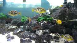 Cynotilapia afra 2x, Protomelas taeniolatus 3x, Nimbochromis venutus 3x, Aulonocara cf. red rubin 3x, Yellow 3x, Cyrtocara moori 4x, Pseudotropheus elongastus usysia 4x