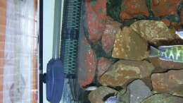 17.12.12 Becken ausgeräumt, teilweise hellen Quarzsand entfernt, Dunklen splitt 1-3mm eingebaut und mit dem Quarzsand vermischt, um den Boden etwas abzudunkeln. Steine wieder in den Ecken verbaut. Im mittleren Bereich jetzt 24 Bund Vallnisneria gigantea eingesetzt, um ein Sichtschutz oder eine Trennlinie zwischen den Steinaufbauten zu schaffen. Finde es mit Pflanzen einfach schöner, lockert ein bisschen auf, vor allem farblich. Pflanzen müssen jetzt natürlich erst mal etwas wachsen. Ostern bekomm ich von meinem Fischhändler noch ein paar schöne Tiere. Genaues folgt dann!! Anschl Wasserwechsel 30%