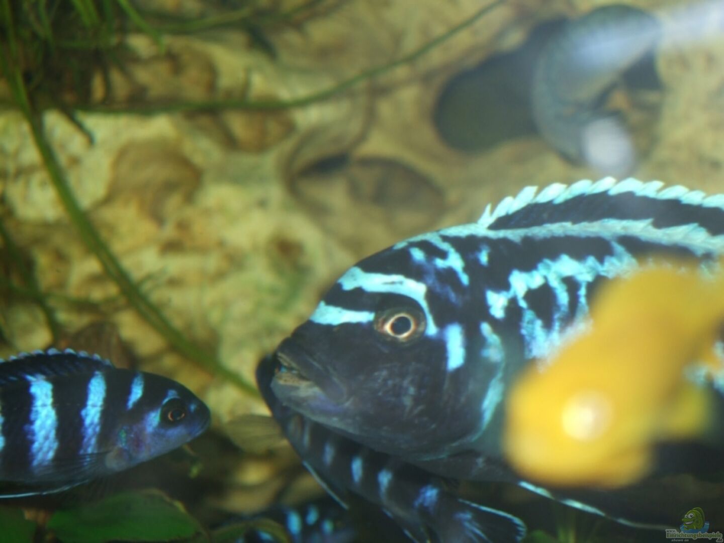 (Wenn das Aquarium gro?? genug ist, empfiehlt es sich meiner Beobachtung nach bei Mbunas zwei Männchen pro Art im Becken zu halten. Da sie häufig miteineander beschäftigt sind, werden die Weibchen nicht ständig bedrängt und die Männchen zeigen meist sehr schöne Farben. Wenn klare Reviere abgesteckt werden können oder sich die Männchen aus dem Weg gehen können, sind die Tiere nicht gestresst und gibt es keine Verletzungen.)