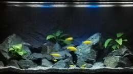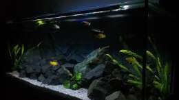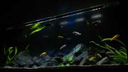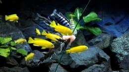 Pseudotropheus saulosi, Cynotilapia zebroides cobuecobue und Synodontis lucipinnis