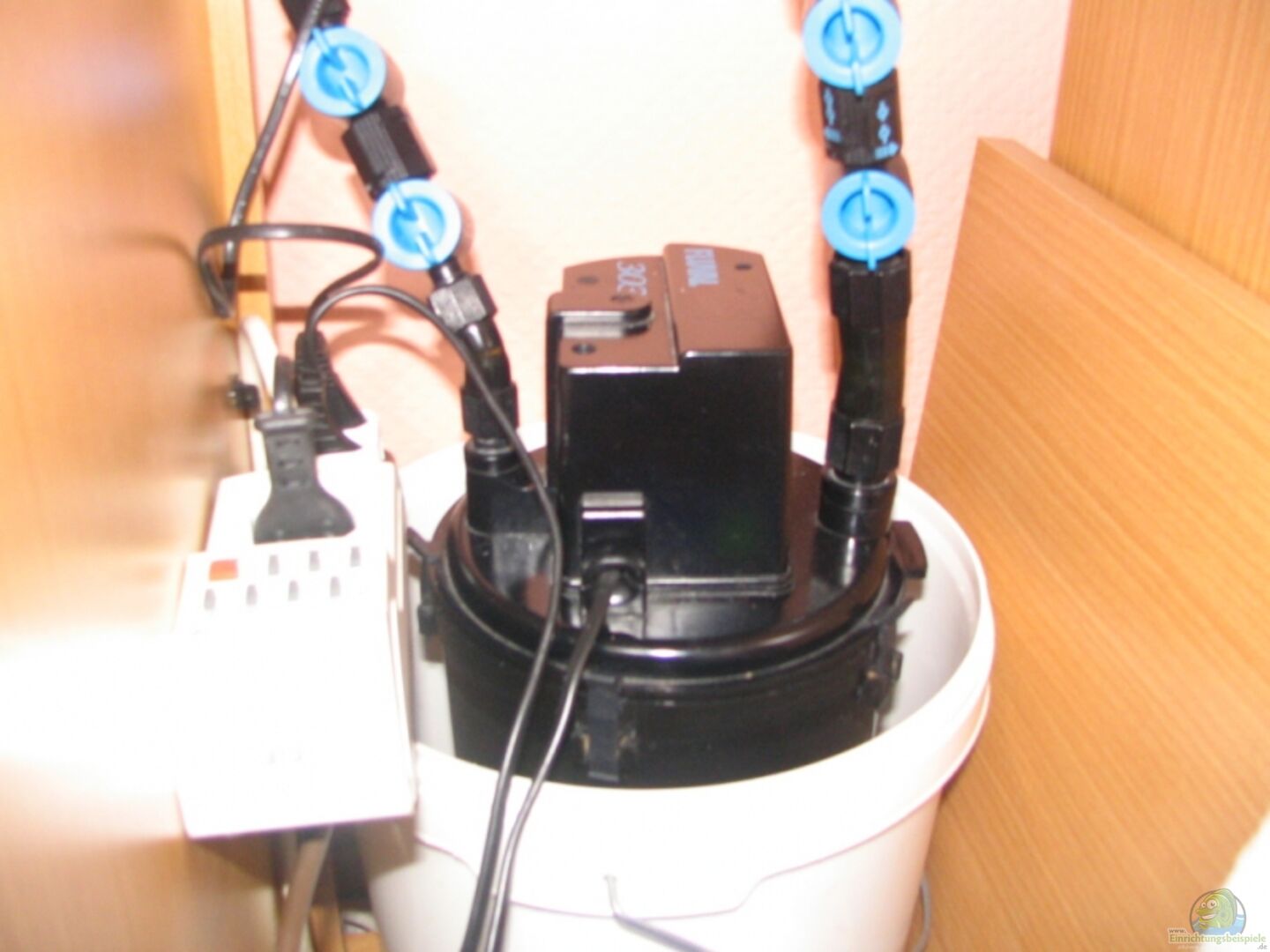 1x Fluval 404 1280 l/h bestückt mit Tonrörchen , Sera Biofibres, Keramikrörchen und Fielterflies, Ansaugstutzen im Jumbo.