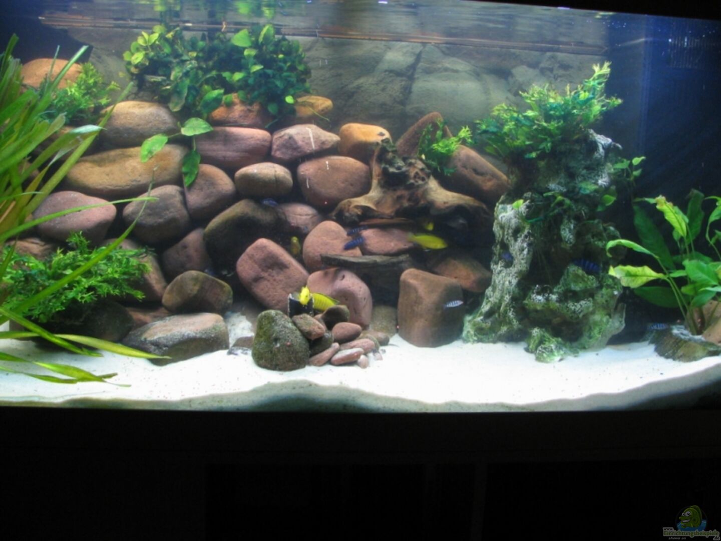 Das Becken läuft jetzt in dieser form seit ca. 1 1/2 Jahr und ist mein erstes Becken mit Barschen. Die Wasserwerte sind sehr Stabil und Fische fühlen sich wohl und vertragen sich. Chef im Becken sind nicht die Demasoni, sondern der Yellwbock, wenn der erscheint machen alle andern platz.