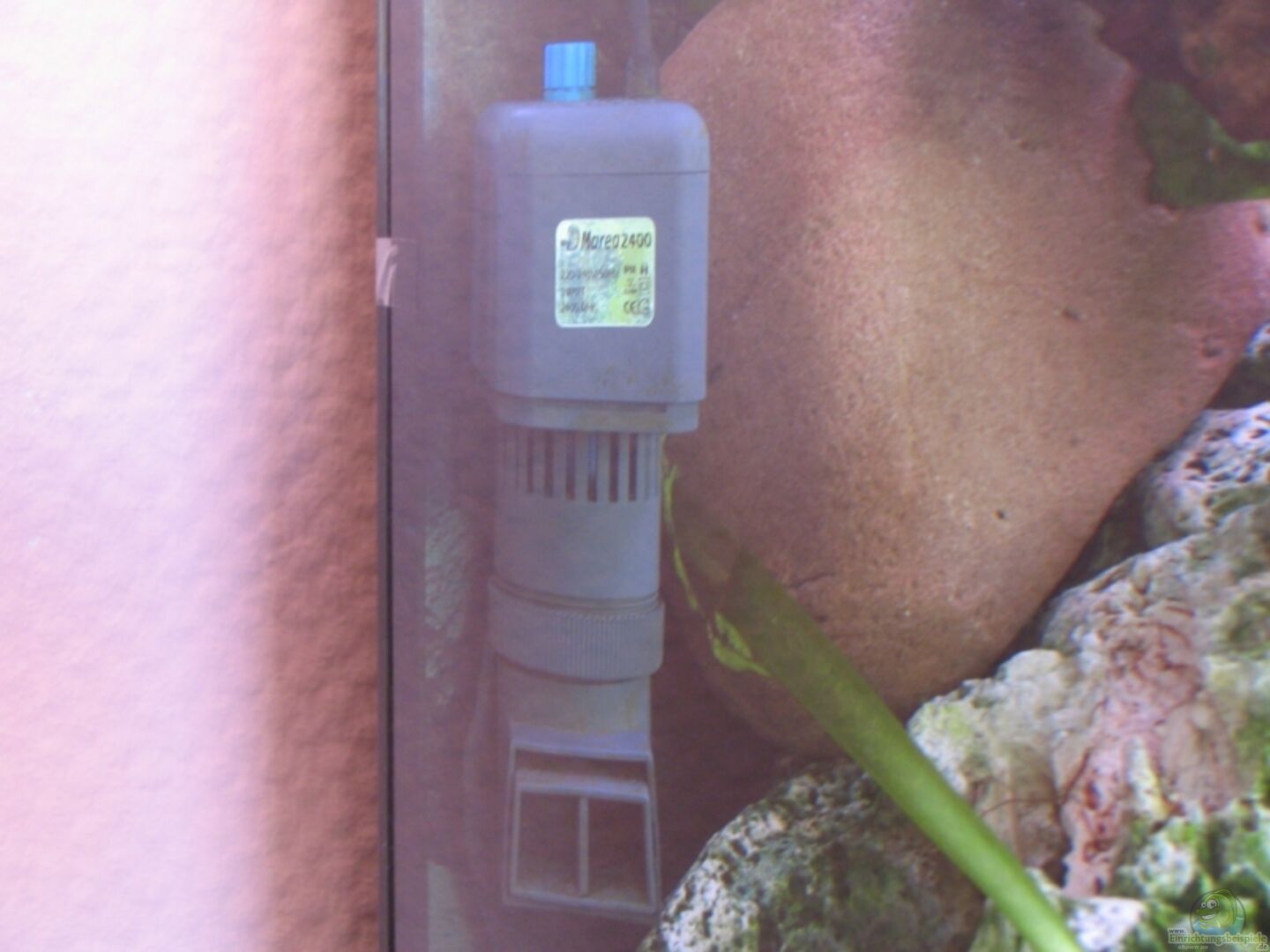 1x Marea Stream 2400 l/h als Strömungspumpe, hat nur 5W und macht eine ganz sachte Strömung