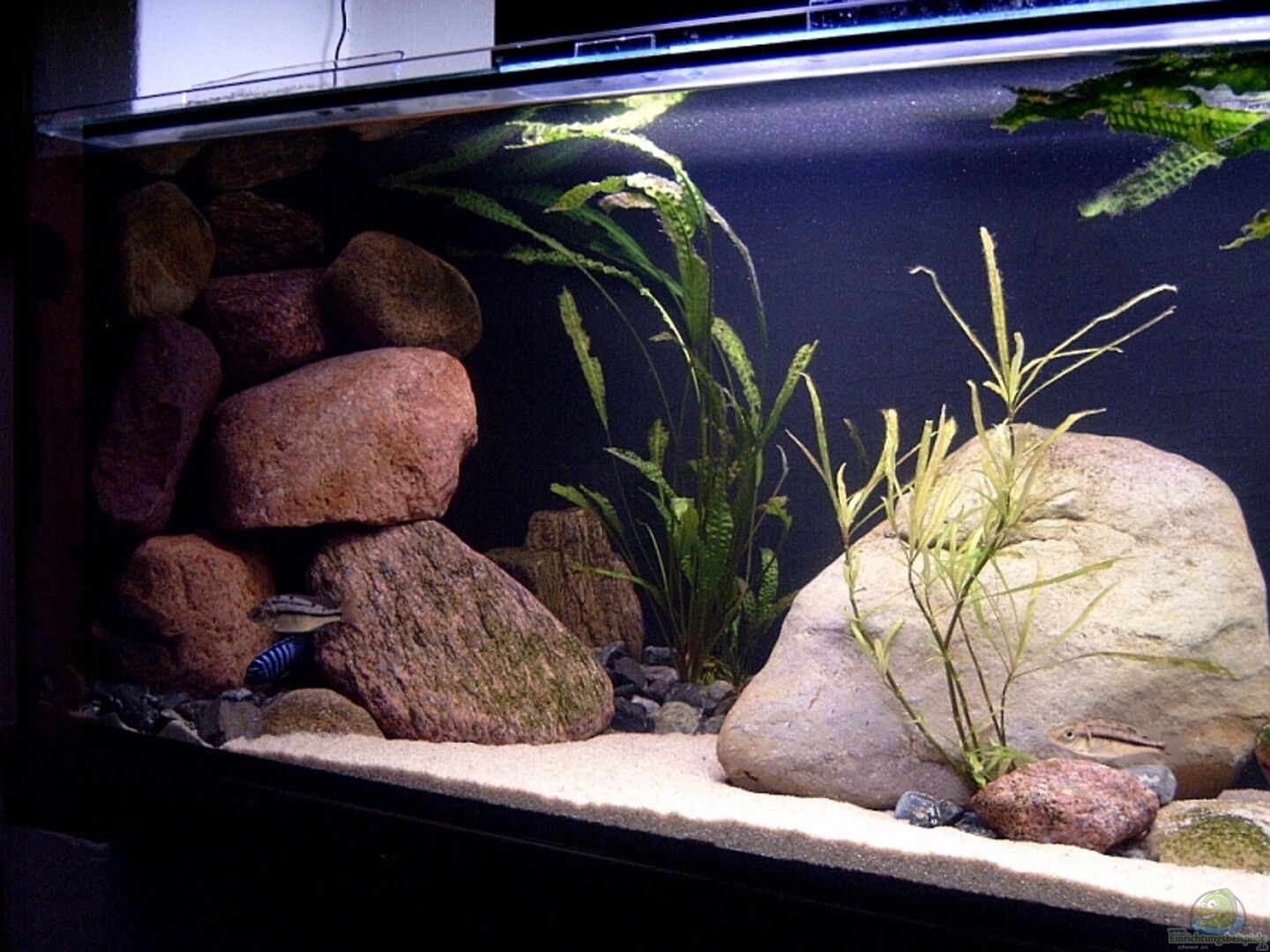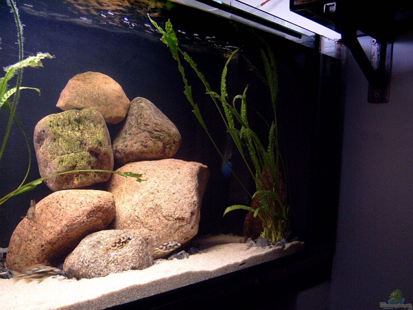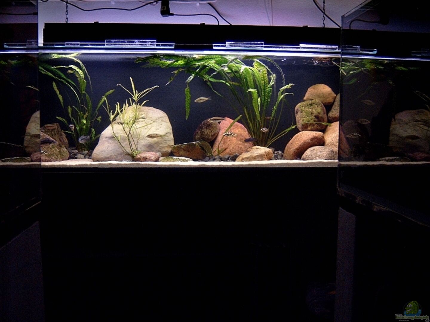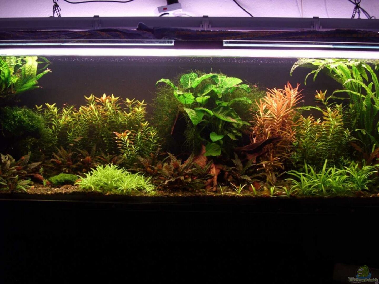 Leider kann ich das gesamte Aquarium schlecht fotografieren, da zu den anderen Aquarien nur 60cm Platz ist. Beim Umbau mussten 4 Aquarien weichen.
