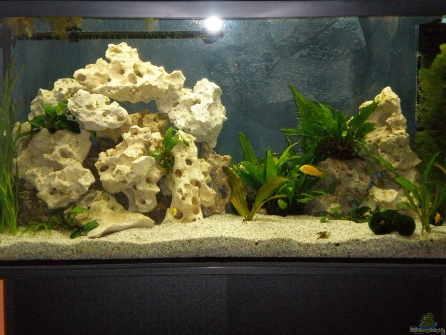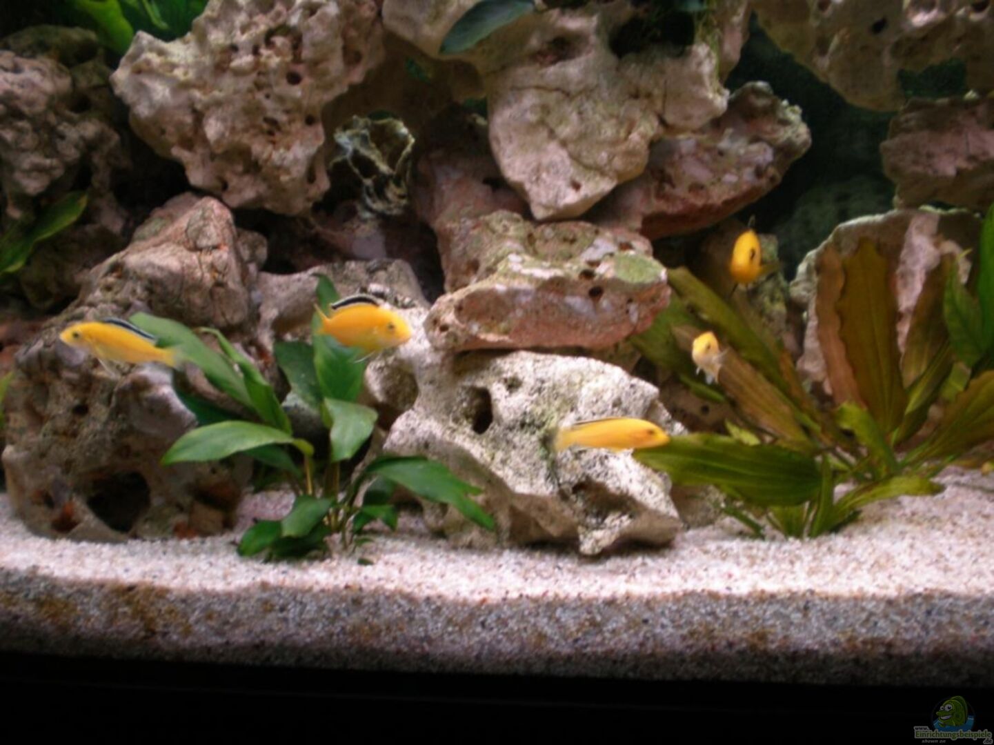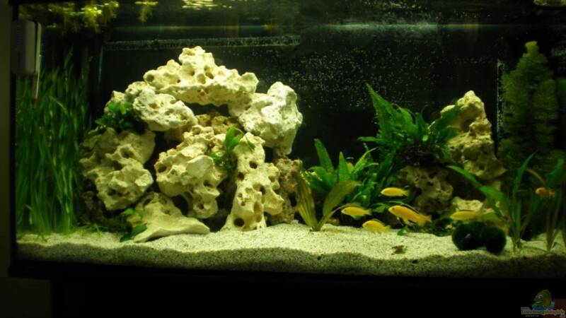 Also ein Artenbecken ist schon mal gut ausgesucht, und grade mit den Labidochromis caeruelus `Yellow` hast du dir schöne Fische ins Becken geholt...tolle Farben, der Aufbau ist echt okay und mir gefällt auch Lochgestein, allerdings kannste meiner Meinung nach sogar was abbauen, Yellows sind nicht revierbetont, und du hättest mehr Schwimmraum!!
