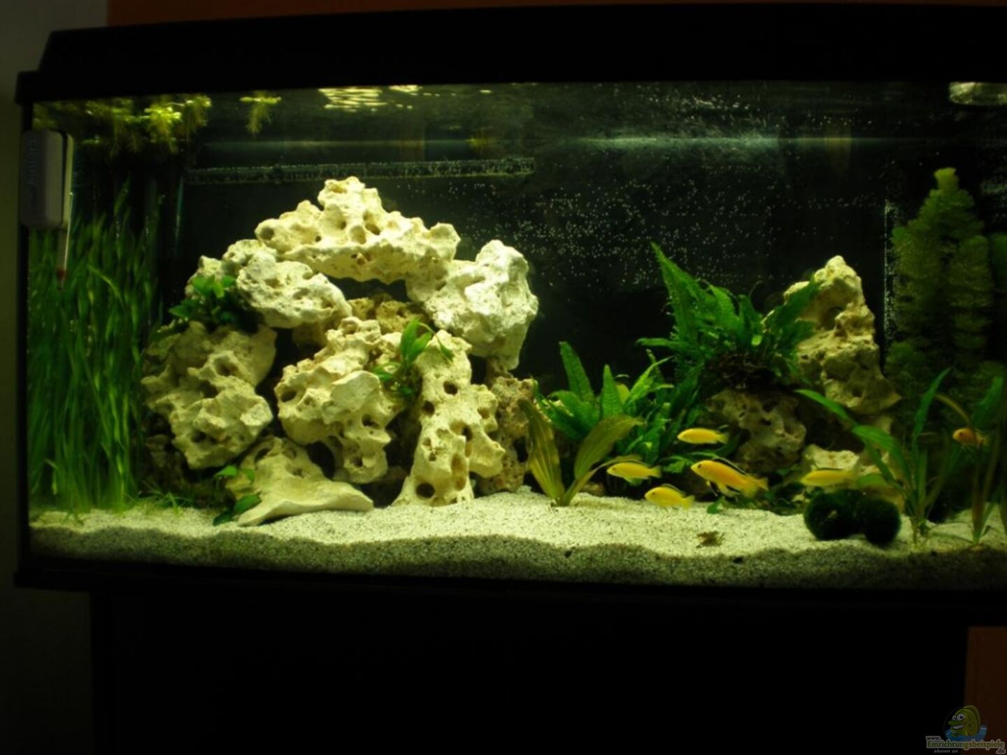 Die Yellows sind schon richtig schöne Fische. Hast sehr gut gewählt. In den Lochsteinen werden die kleinen (irgendwann) auch schöne Verstecke finden. Tolles Becken.