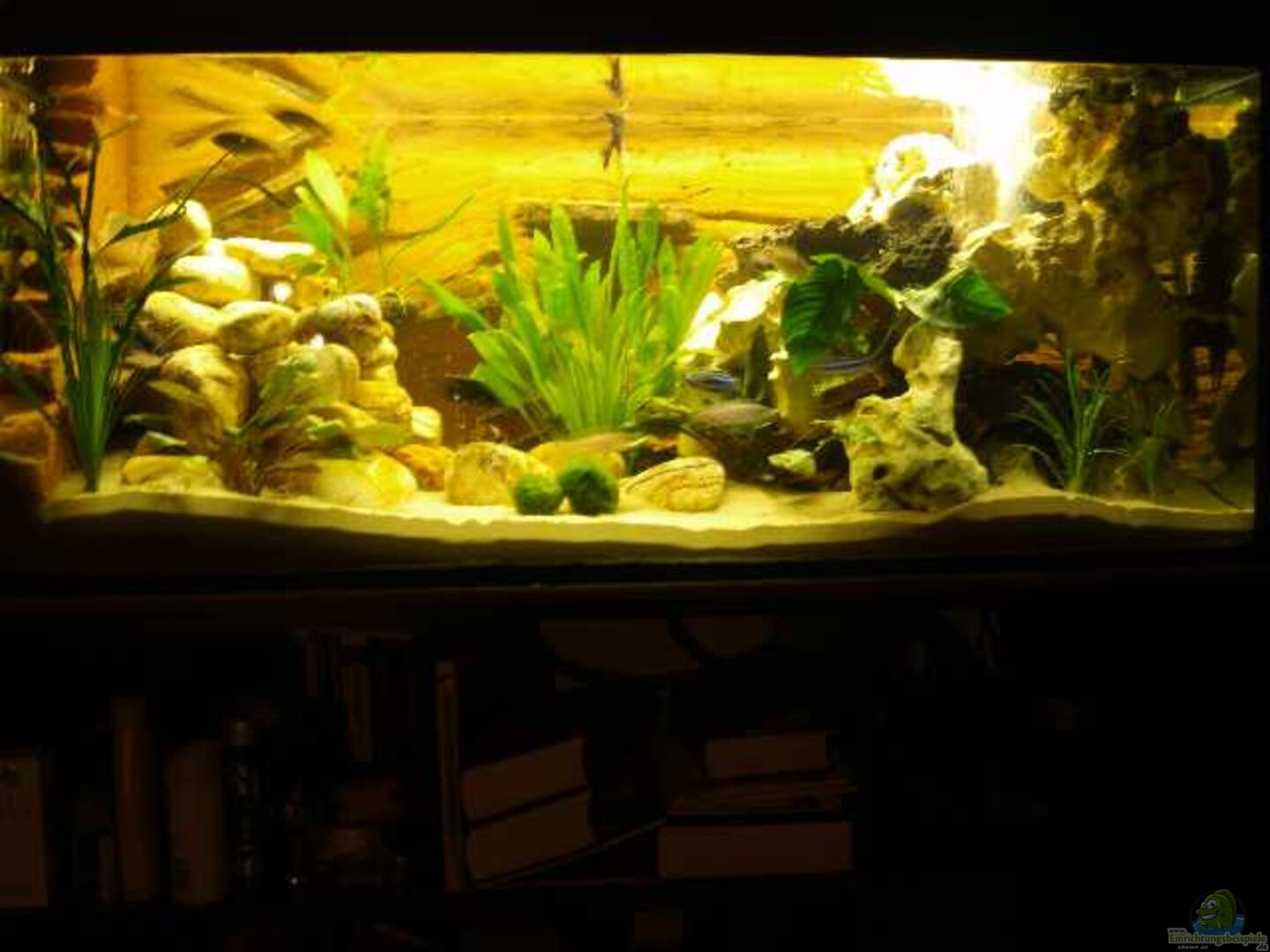 hast ja selber schon gemerkt, dass dir der Besatz zu hoch vorkommt.Ich habe selber ein paar Arten zuviel drin und habe 150 liter mehr wie du.Wirst also schon deshalb Punktabzug bekommen.Aber es geht ja nicht nur um die Bewertung.Wegen Mbunas/NonMbunas habe ich kein Problem.Wird halt immer wieder gesagt, dass das nicht geht.Ich habe seit 3 Tagen 4 Aulos zu meinen Mbunas gesetzt und seit 1, 5 Tagen klappt das ganz gut.Technisch finde ich dein Becken recht gut und es ist auch toll, dass du soviel selbst gemacht hast(Rückwand).Nur die Optik ist nicht so mein Fall.Es sieht glaub ich schöner aus, wenn man sich auf eine Steinsorte beschränkt.Wenn du grö?ere Steine nimmst, wirkt alles optisch auch grö?er.Ich hatte vorher auch Flusskiesel drin, das nervte mich nach ner Zeit.Aber Optik ist Geschmackssache.Ich werde immer mal vorbeischauen, weils ausbaufähig ist.